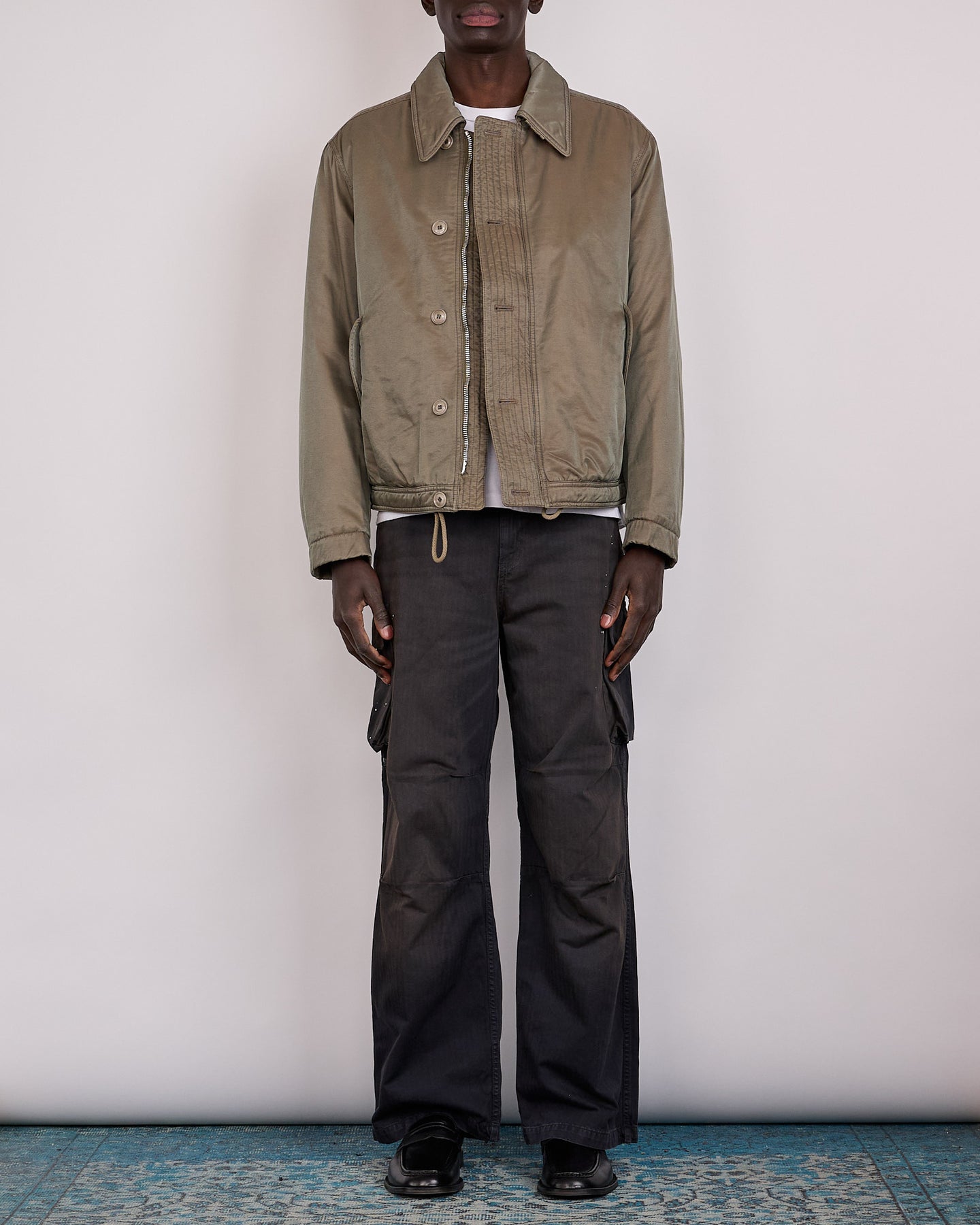 The quilted, fully wadded lining provides warmth and structure, while a storm flap collar and placket offer protection and clean finishing. Utility-driven details and premium hardware complete the design.