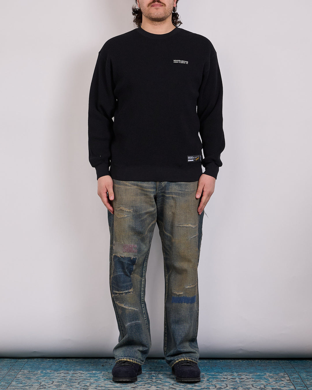 Neighborhood Waffle Fabric LS-1 Crewneck Black