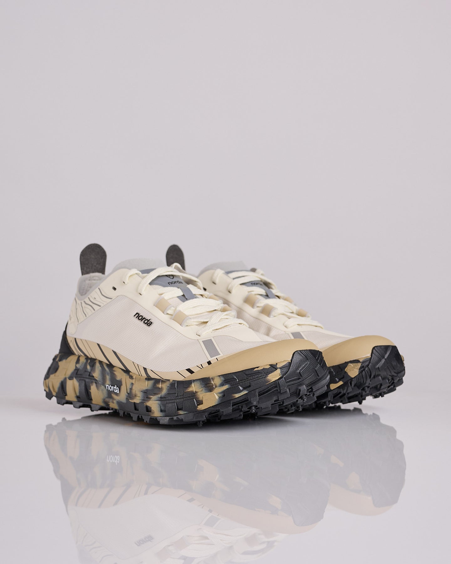 The norda 001A is built for long-distance performance with a focus on strength, lightness, and sustainability. Designed with a proprietary Arnitel® TPEE midsole for superior energy return and durability, this ultra-distance runner pairs an exclusive Vibram® soleplate with the world’s first seamless Dyneema® upper: the strongest and lightest material on Earth. Every component is considered: bio-based Dyneema® laces, custom eTPU insoles for responsive cushioning, and reflective details for 360° visibility. The result is a refined balance of precision engineering and natural movement: a trail runner that thrives wherever your path takes you.