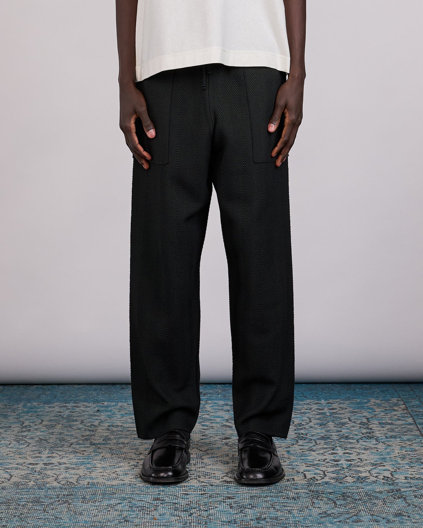 Finished with an elasticated waistband and inlaid patch pockets, the pant balances technical knit construction with functional detail for versatile, all-day wear.