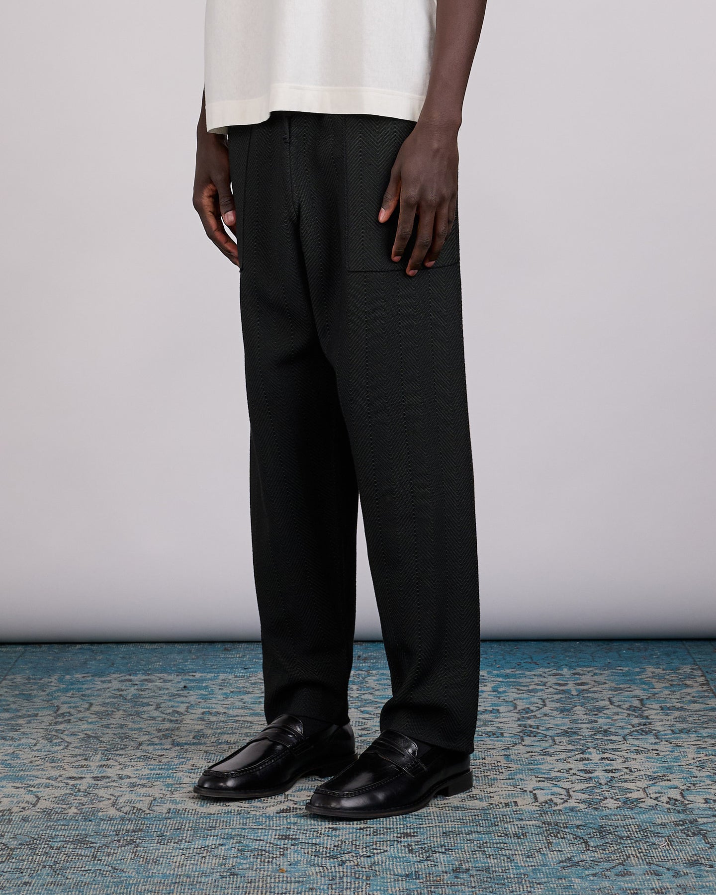 Done in a comfortable, stretchy wool-blend knit, the HOMME PLISSÉ ISSEY MIYAKE Inlaid Knit Pant Black offers a relaxed, modern take on everyday trousers. The seamless, one-size construction is cut with a straight, cropped silhouette and an oversized fit, delivering ease of movement and a clean, sculptural profile.