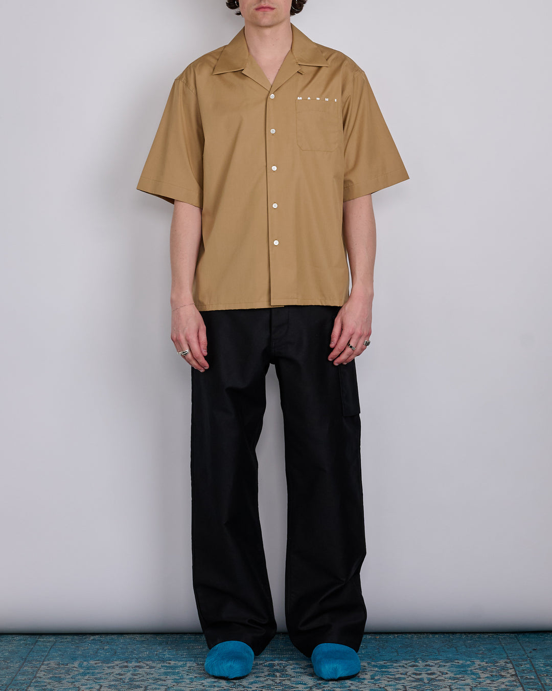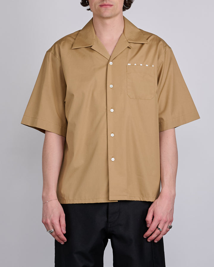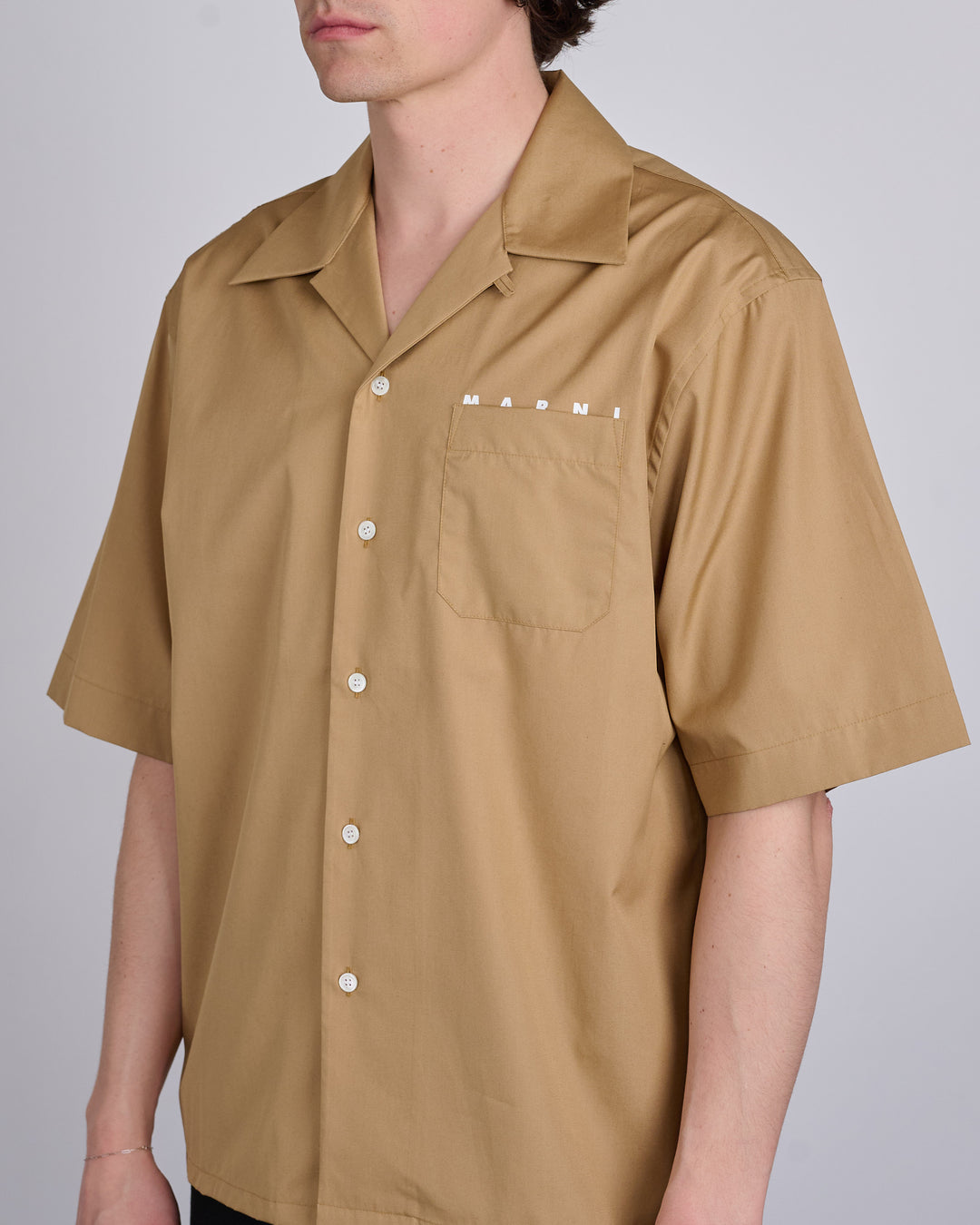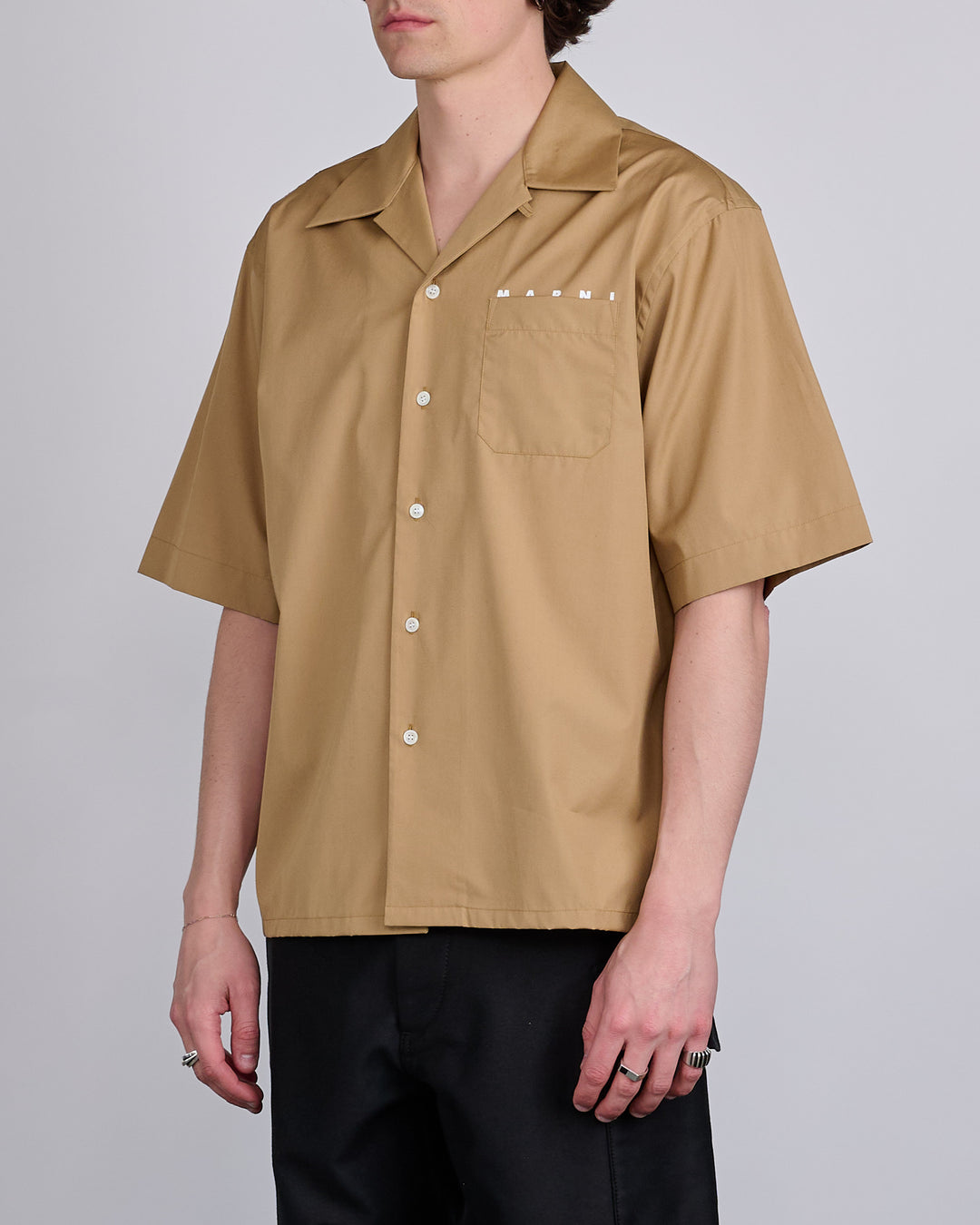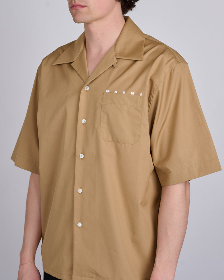 Marni Logo Poplin Bowling Button Shirt Winter Wheat