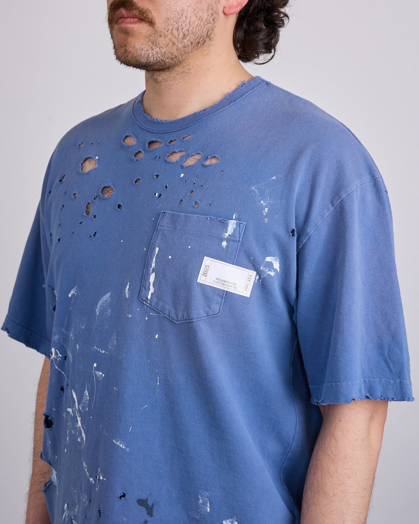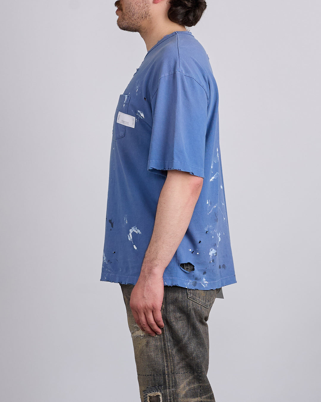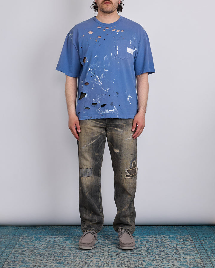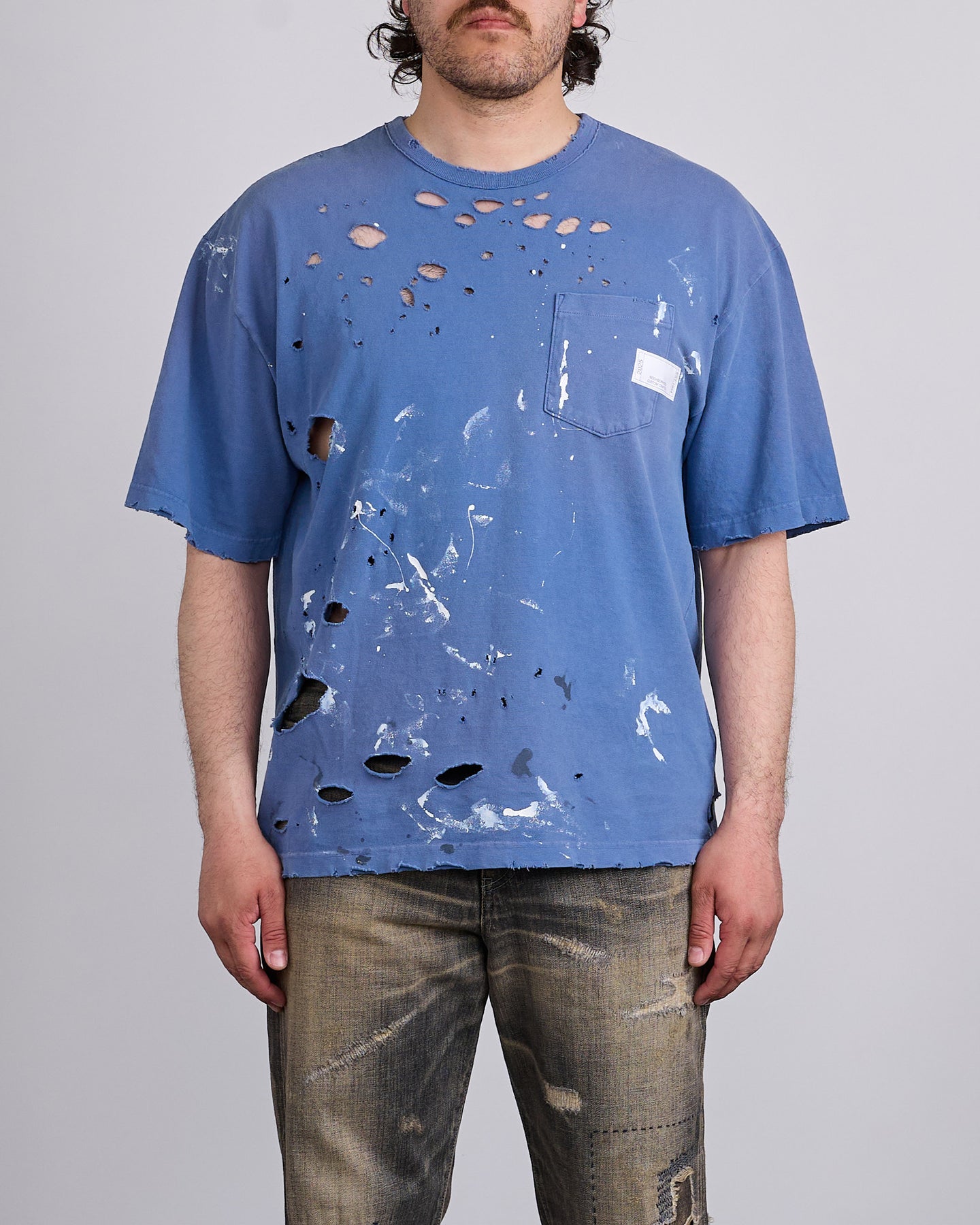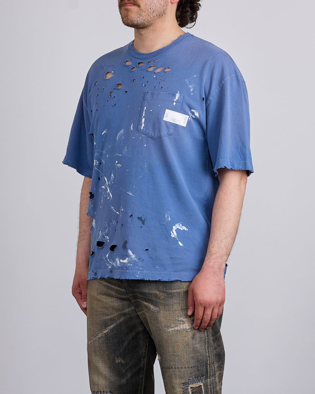 Short sleeve crewneck tee crafted from faded cotton jersey and finished with NEIGHBORHOOD’s signature savage processing for a worn-in, vintage feel. The distressing is achieved through a composite process of fading, bleaching, and damage detailing. Features utility-style front pockets, a clip tag at the side seam, and a custom-crafted size label.