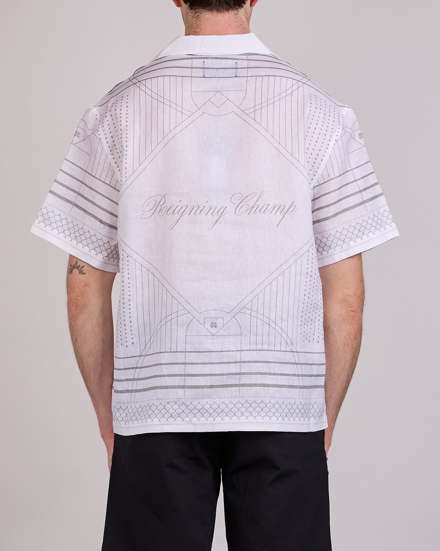 Raise your game in this printed camp collar shirt, crafted from airy, lightweight linen. Ideal in warmer weather and cut in a standard fit for versatile wear. Designed with a clean placket, faux shell buttons, and a flat hem.
