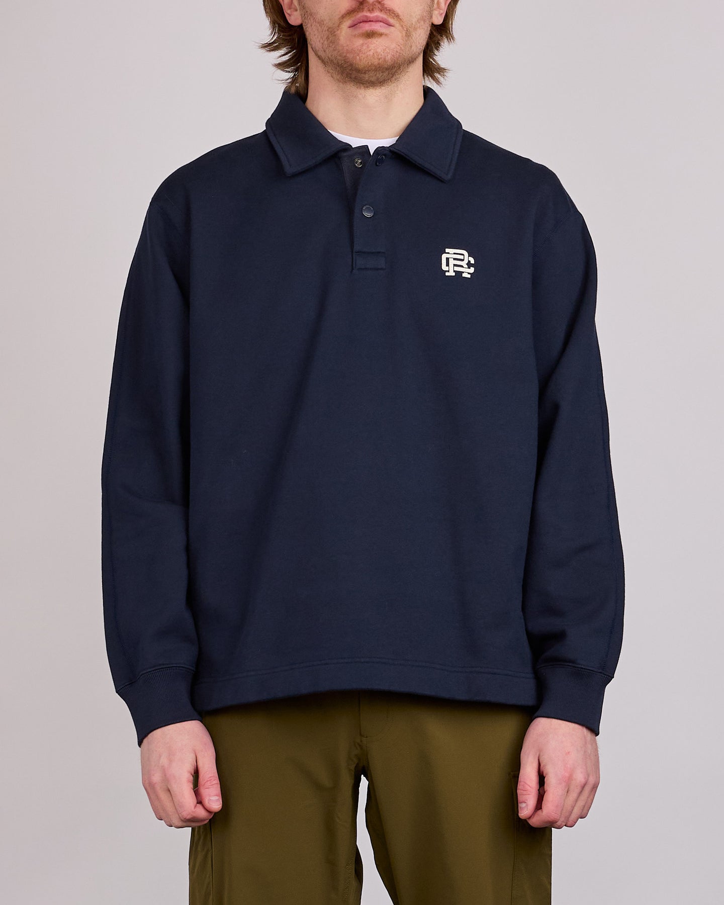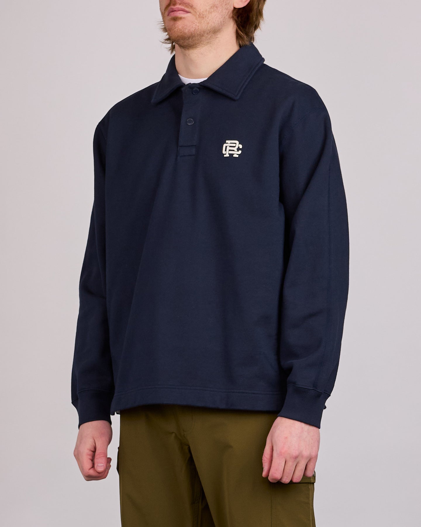 Reigning Champ Midweight Terry Monogram Rugby Shirt Navy-White