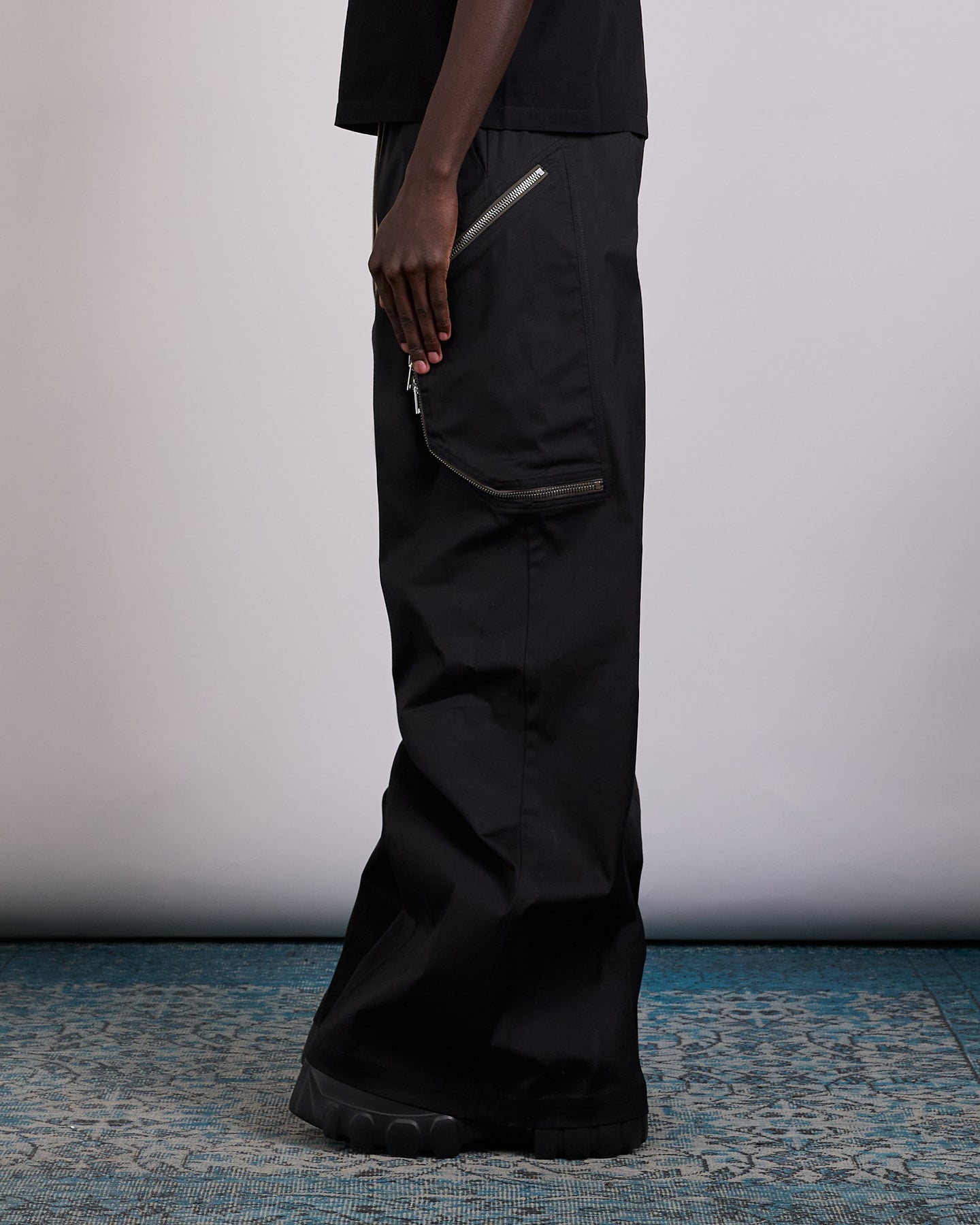 Rick Owens SS26 Temple Heizer Belas in Black Stretch Poplin