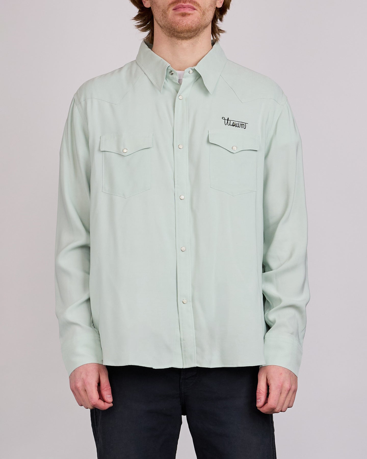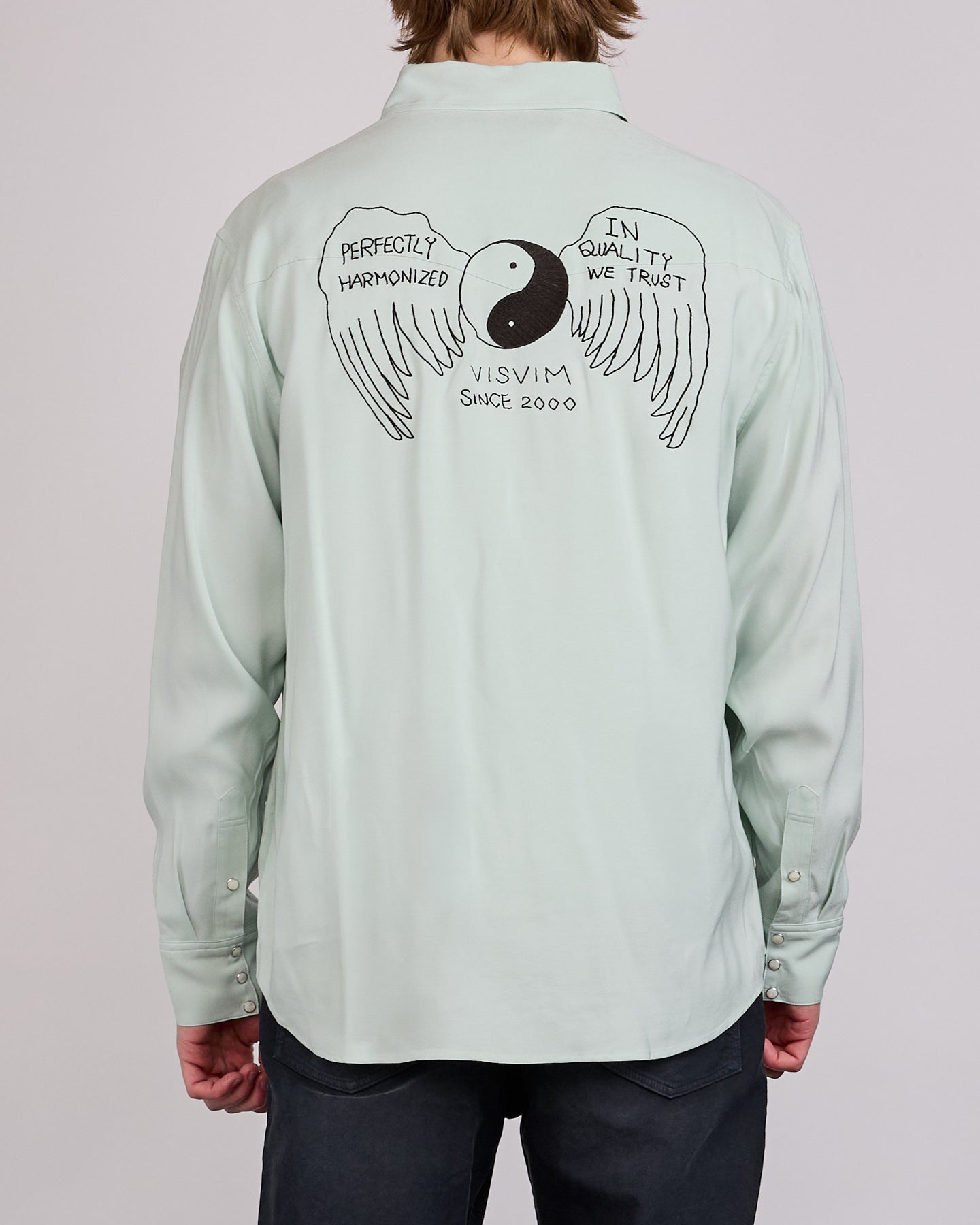 Produced in custom rayon canvas, the visvim Four Corners Snap Shirt Lt. Green combines fluid drape with a structured, pressed finish. Designed with a clean silhouette, the shirt balances softness and clarity through material choice and refined construction.