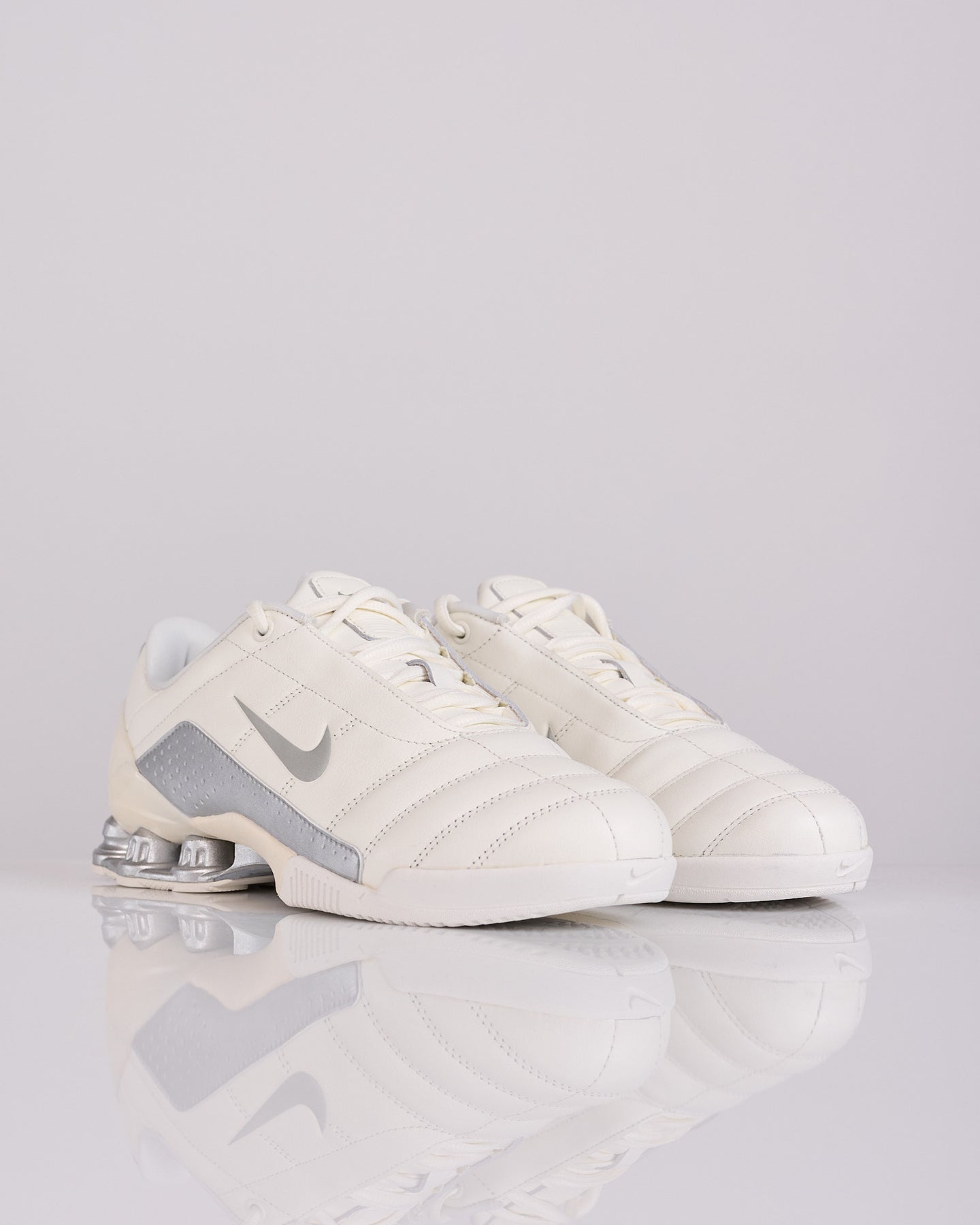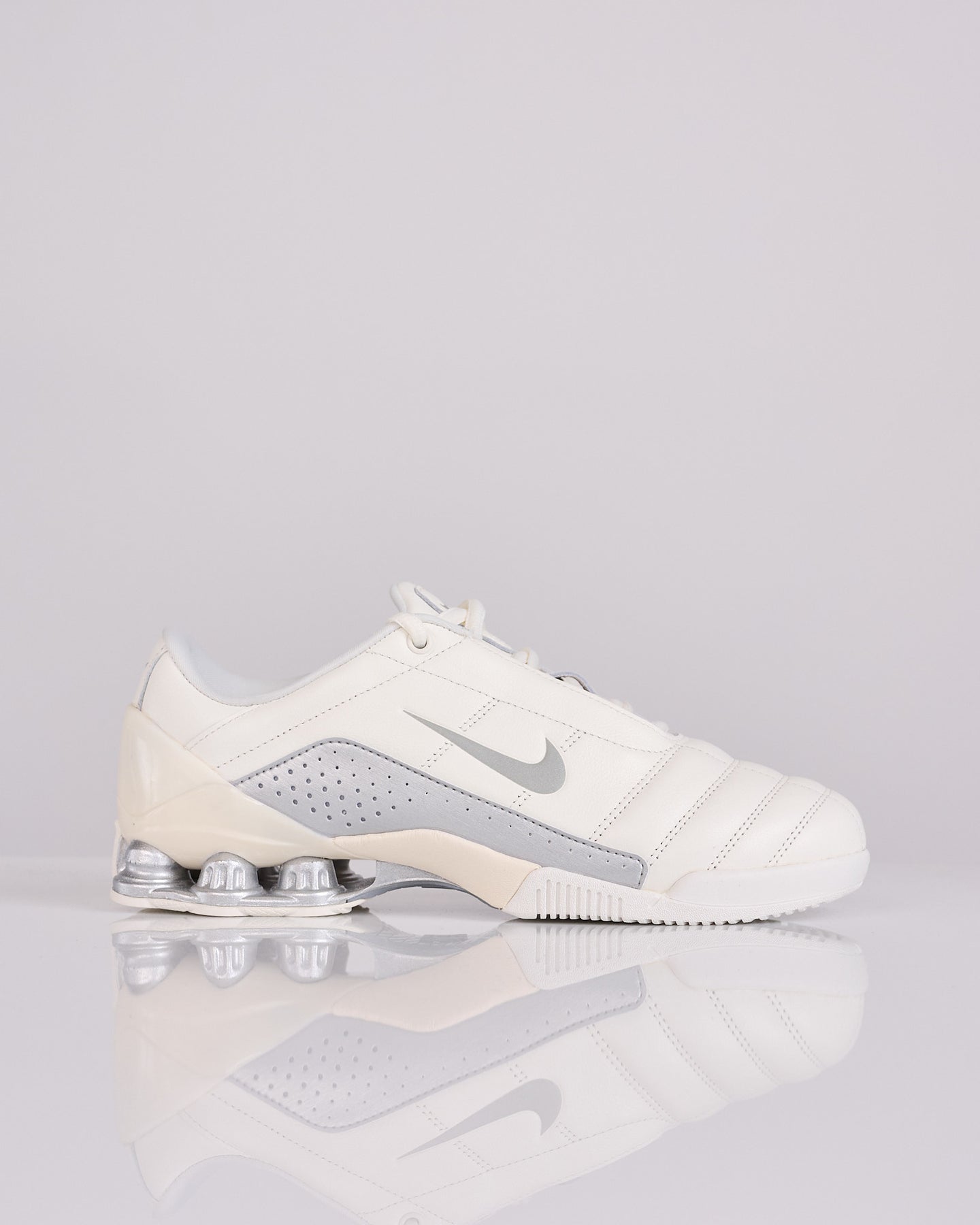 Retaining the iconic DNA of the Total 90 and integrating Shox technology for exceptional cushioning, the Magia evokes the nostalgia of the early 2000s. Today, it is her style that she imposes. The Sail tone of premium genuine leather harmonizes with the metallic silver touches present in Shox technology, side reinforcement and Swoosh logo. The result: a refined aesthetic embellished with futuristic elements.