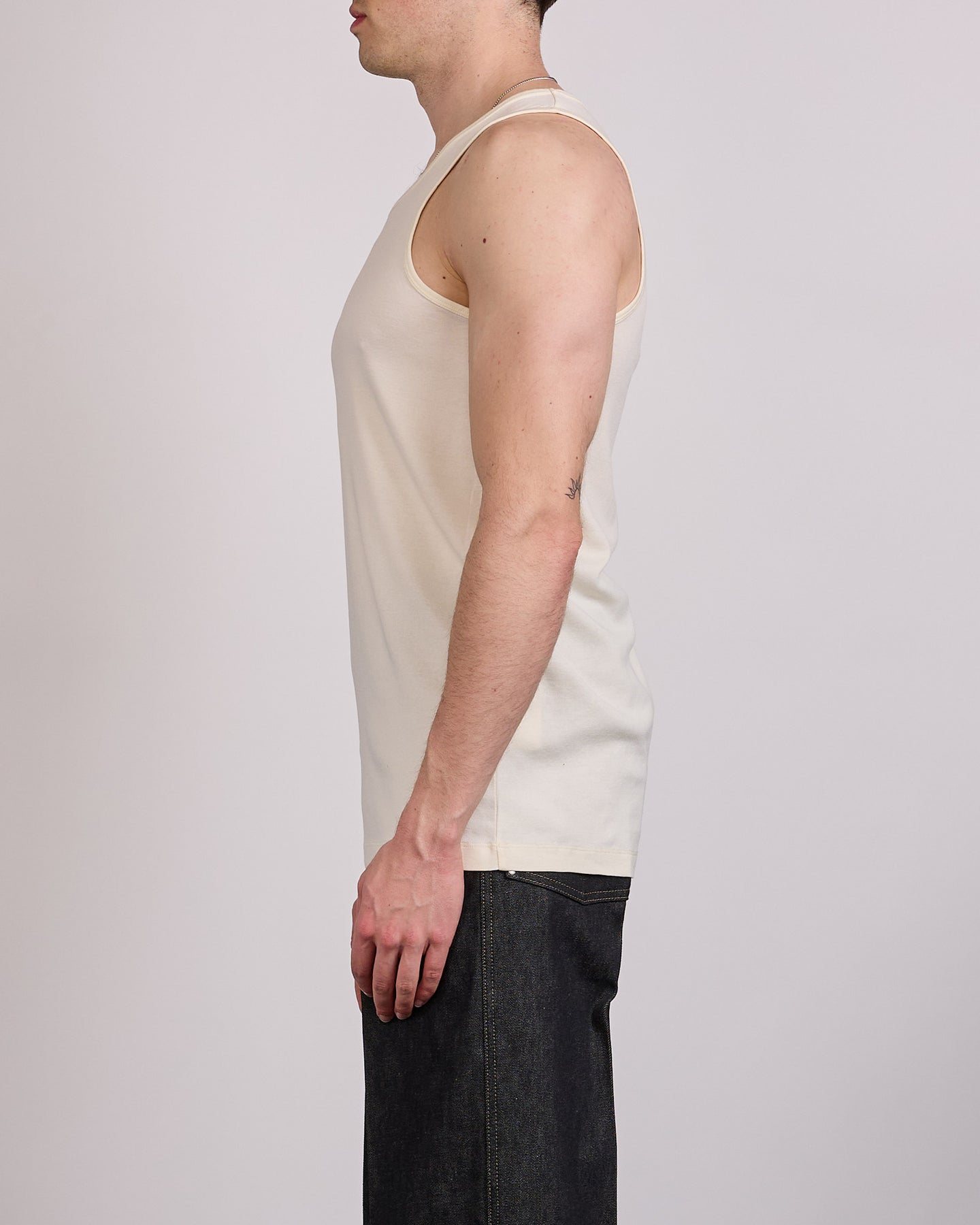 A returning staple in the LEMAIRE vestiaire, the LEMAIRE Tank Top Light Cream is designed as a versatile layering piece with a refined, understated finish. Cut from mid-weight cotton jersey, the ribbed construction offers a soft, flexible feel with subtle texture. Worn as a second skin or on its own, it delivers comfort and simplicity in equal measure.