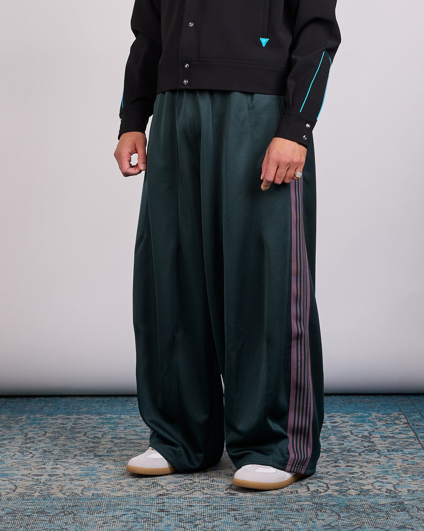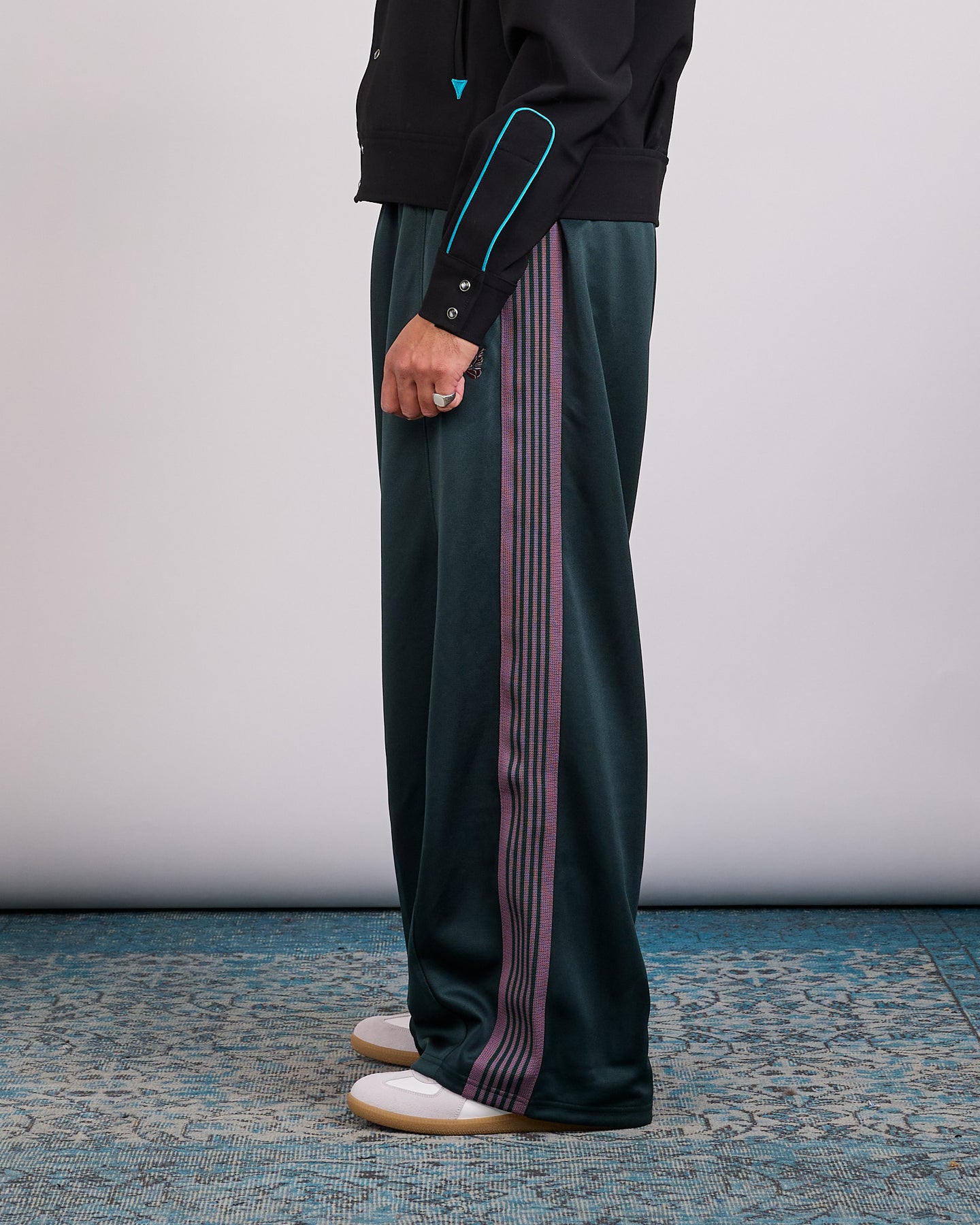 A signature silhouette within every Needles collection, the H.D. Track Pant is defined by its dramatic “hiza deru” shape, where darts at the waist and hem create a wide, sculptural volume through the leg. Cut from smooth polyester with classic track styling, the exaggerated form delivers exceptional comfort and a relaxed, expressive look suited for everyday wear. Finished with the brand’s iconic Papillon embroidery.