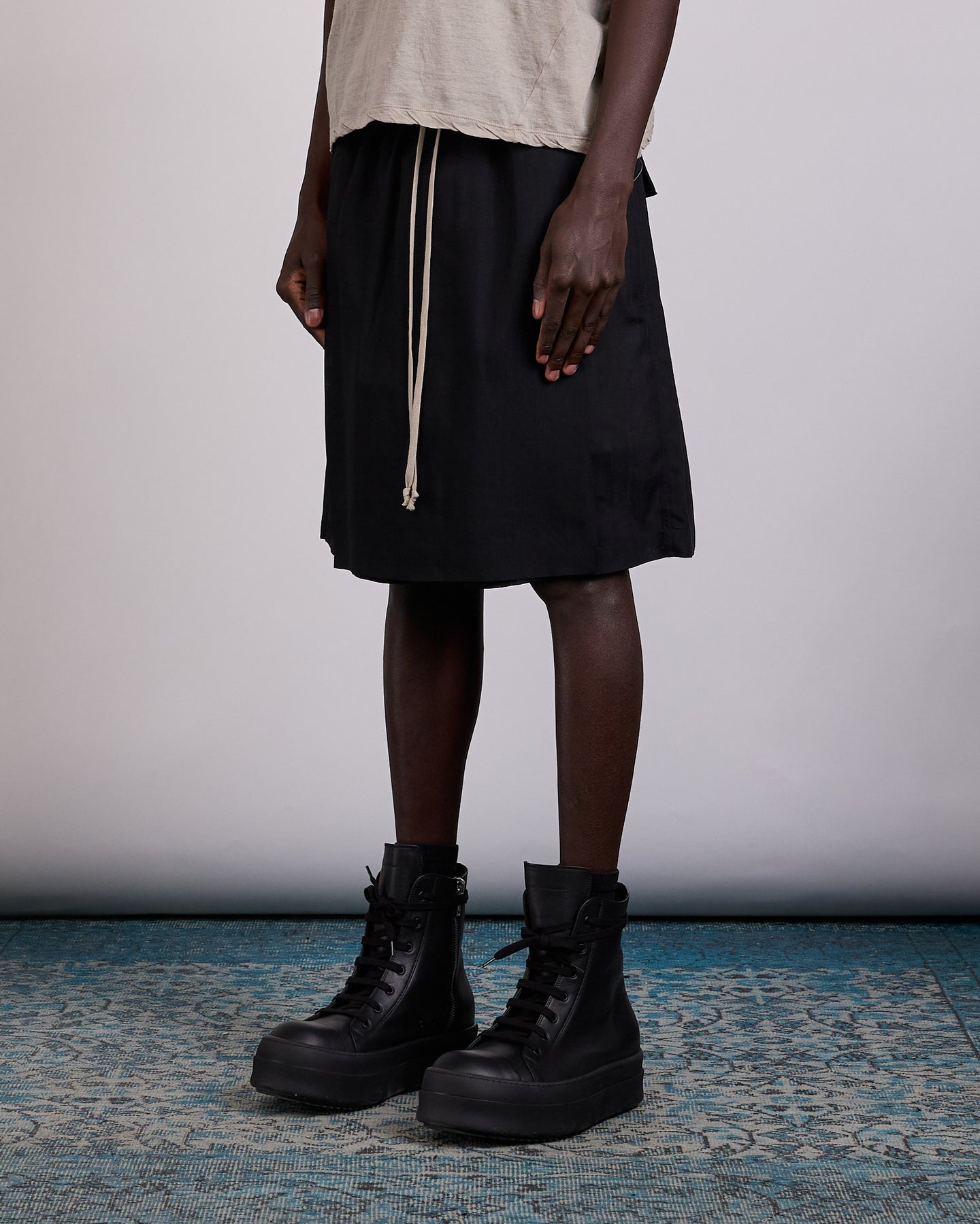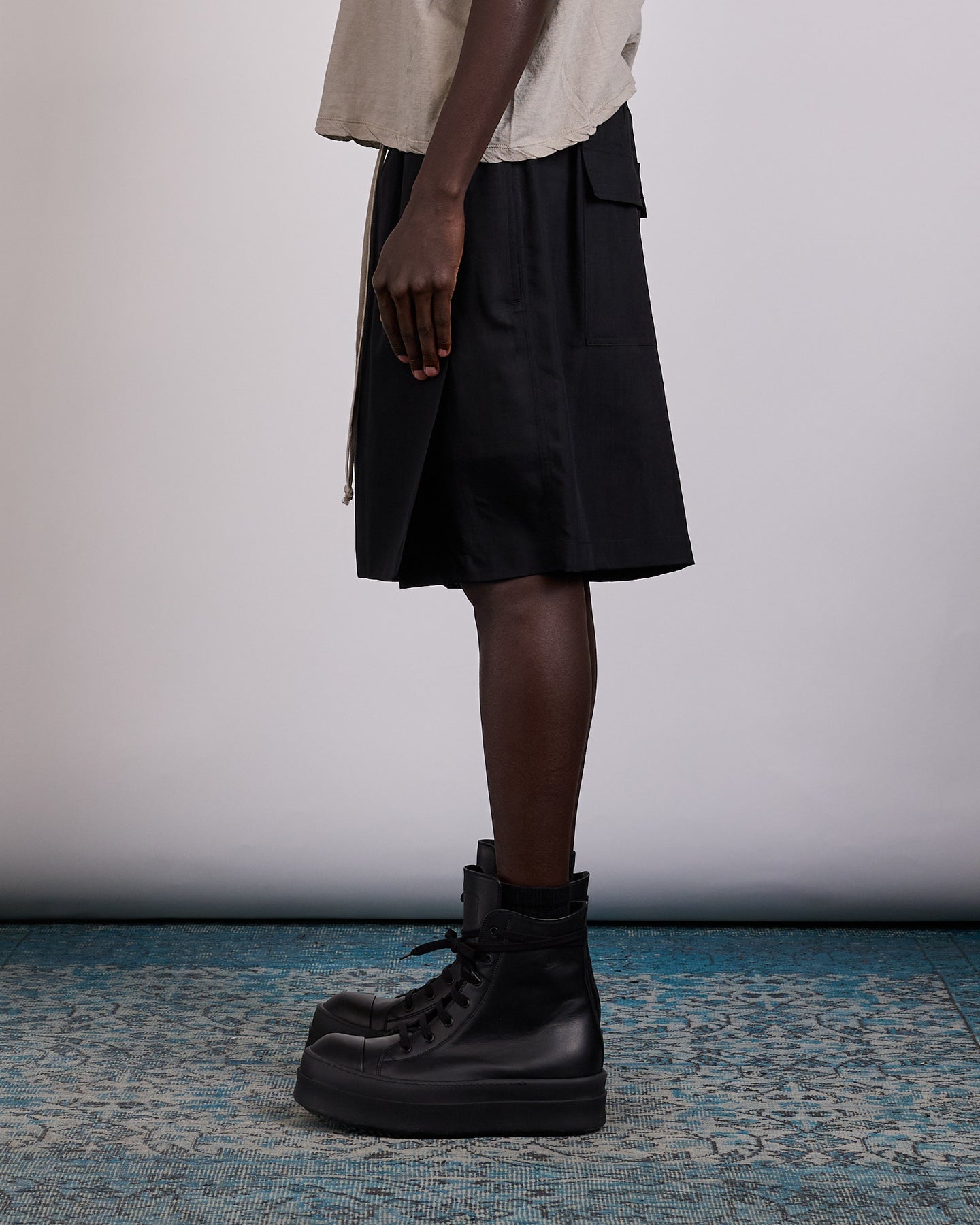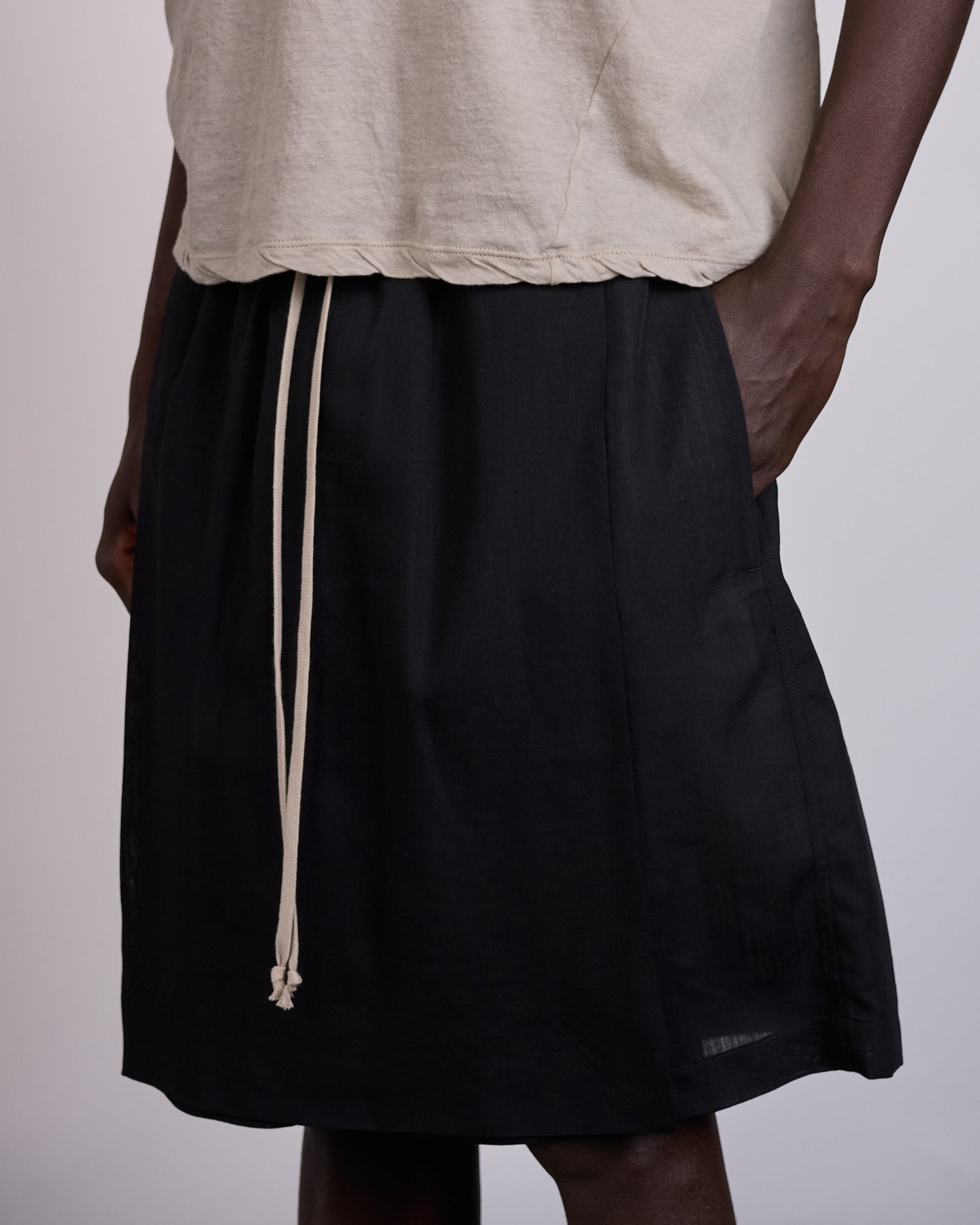 Rick Owens SS26 Temple Kiltshorts in Black Wool Gauze