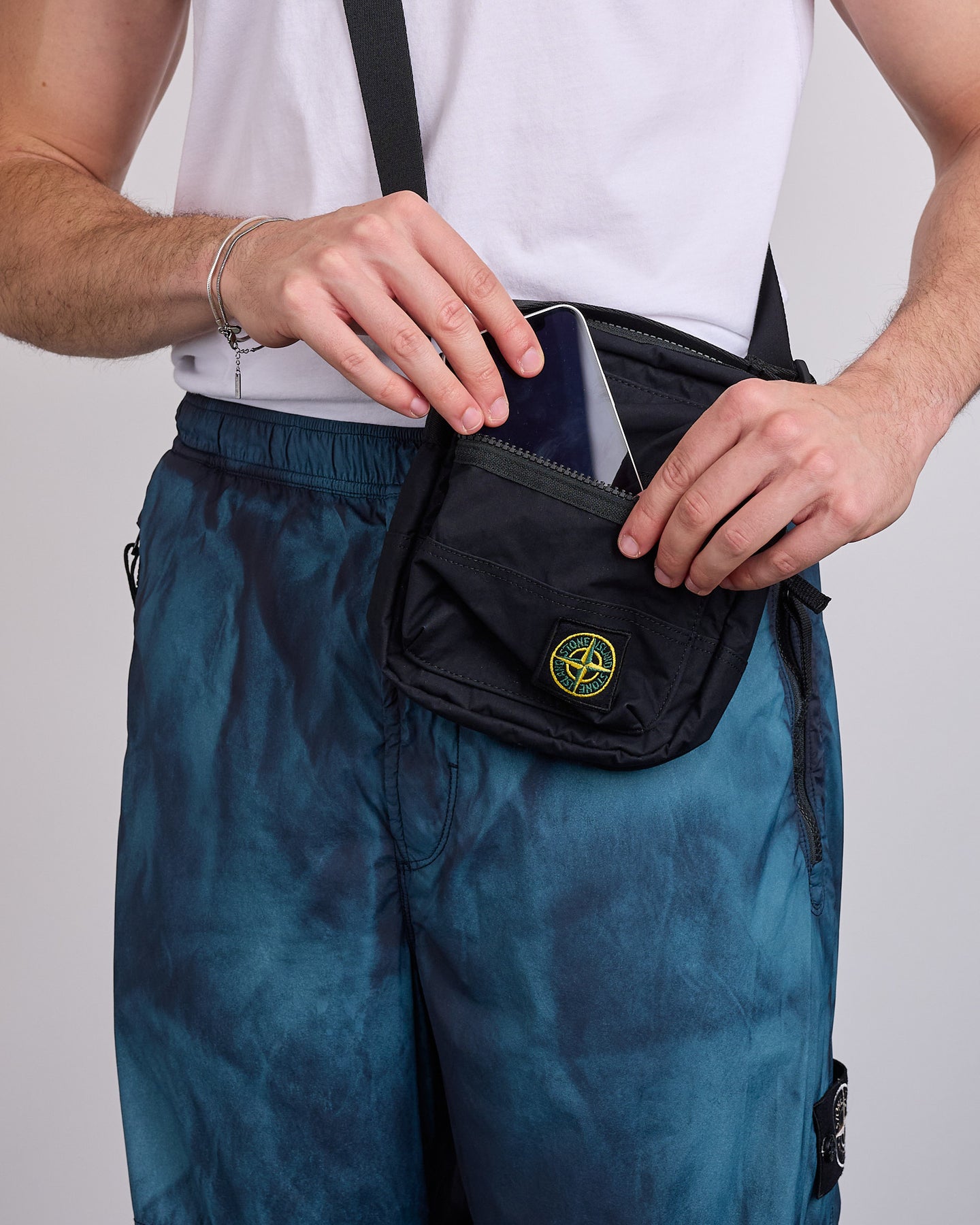 Stone Island Aluminum Tela Side Bag Black