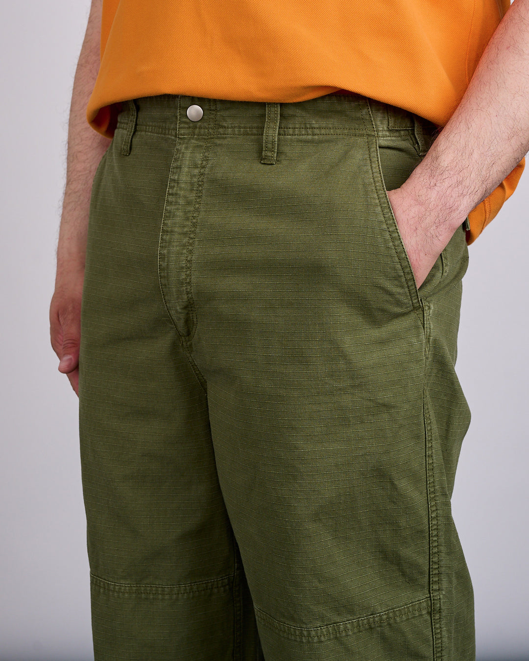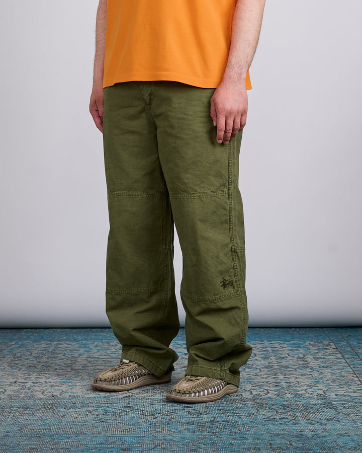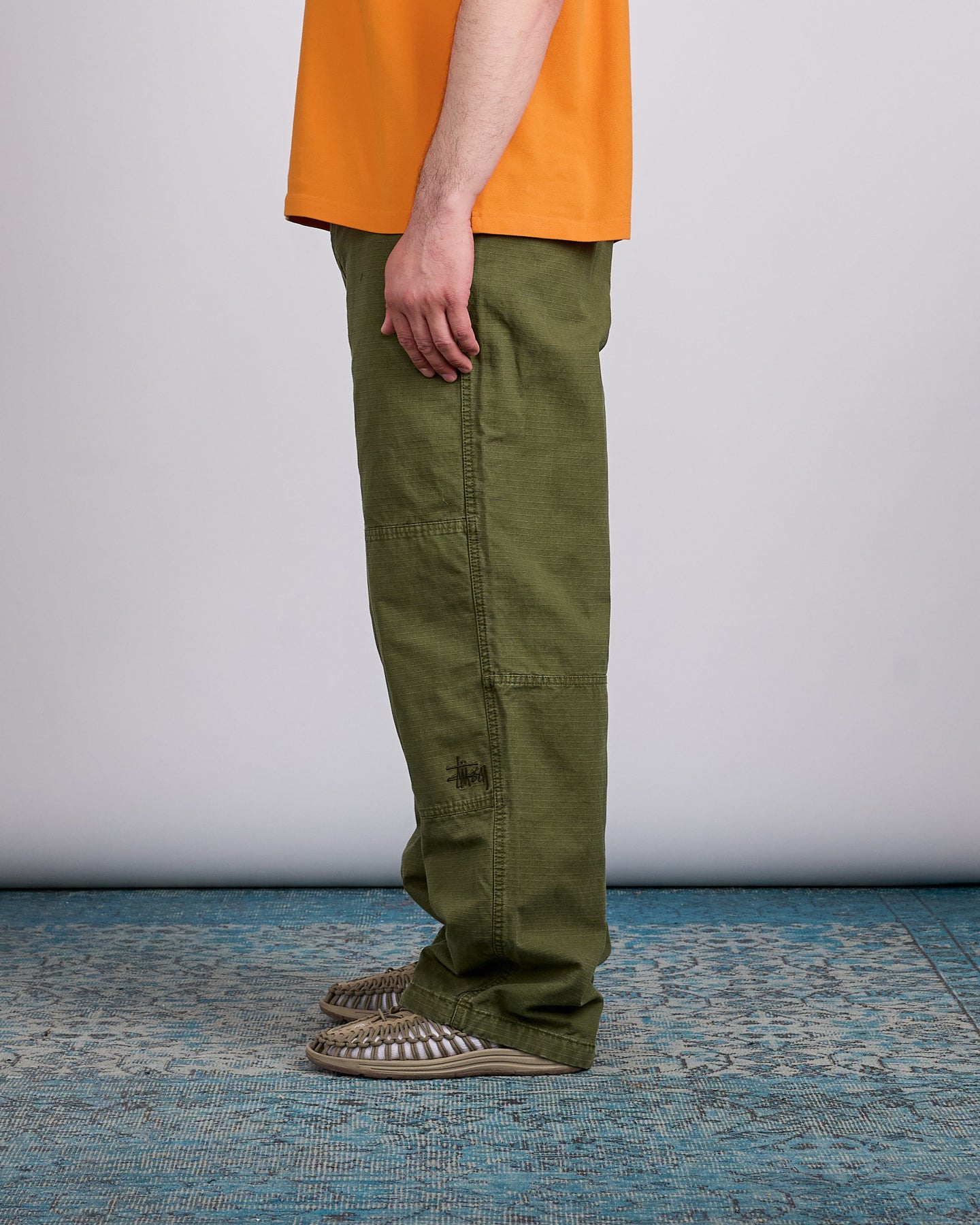 Relaxed fit field pant in washed cotton ripstop. Features reinforced knee panels, adjustable waist tabs and drawcords at hem. Stüssy basic logo in tonal embroidery at left knee.