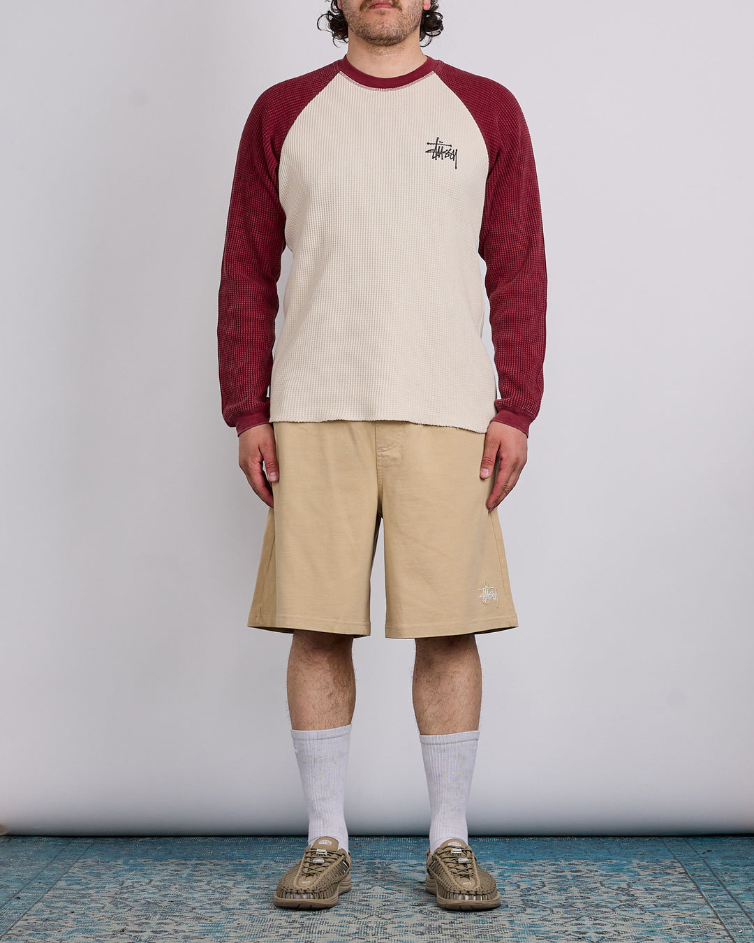 Relaxed fit garment washed short in 350gsm cotton jersey. Stüssy basic logo embroidery at left leg.