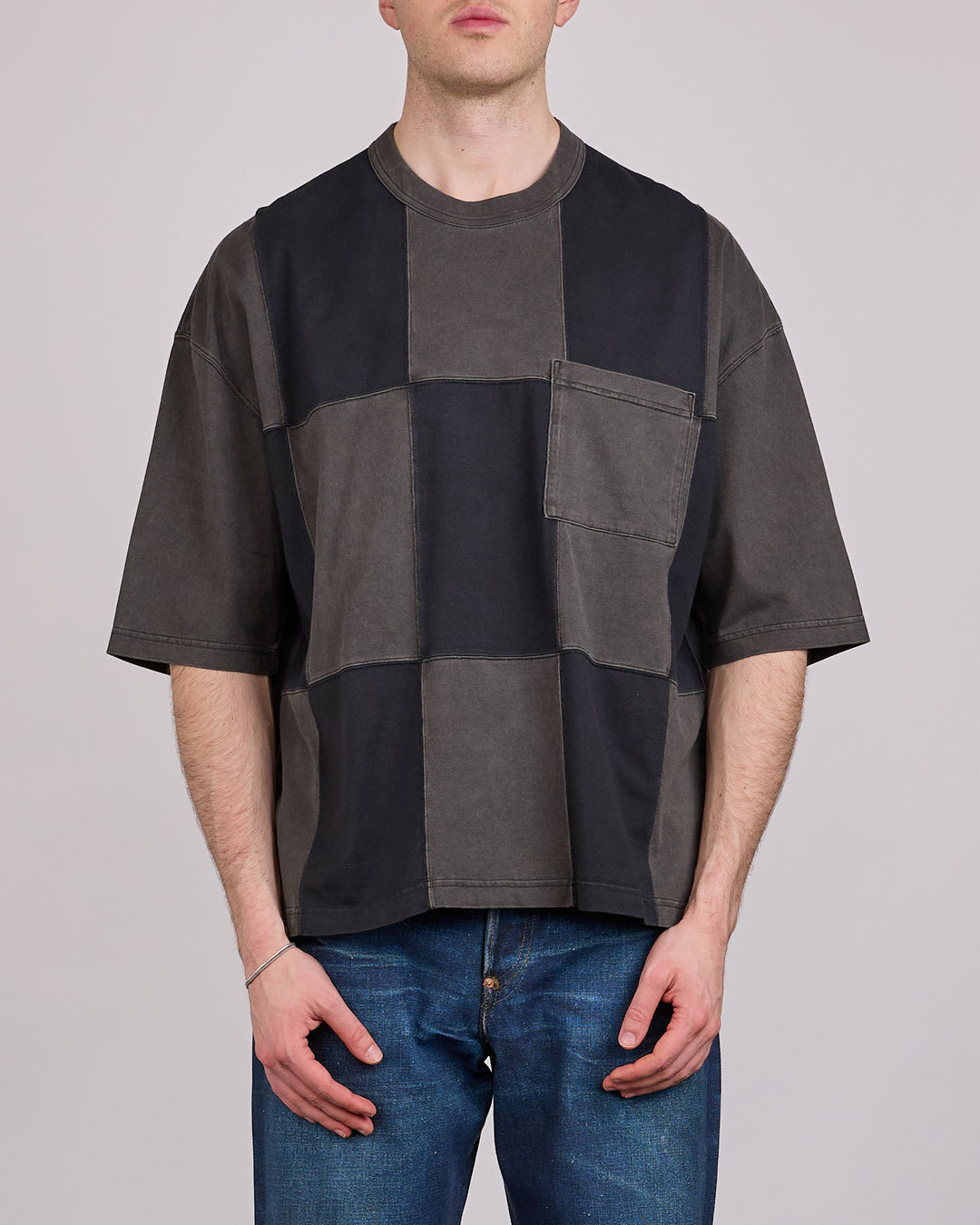 COMME des GARÇONS HOMME Cotton Jersey Patchwork T-Shirt Charcoal Mix