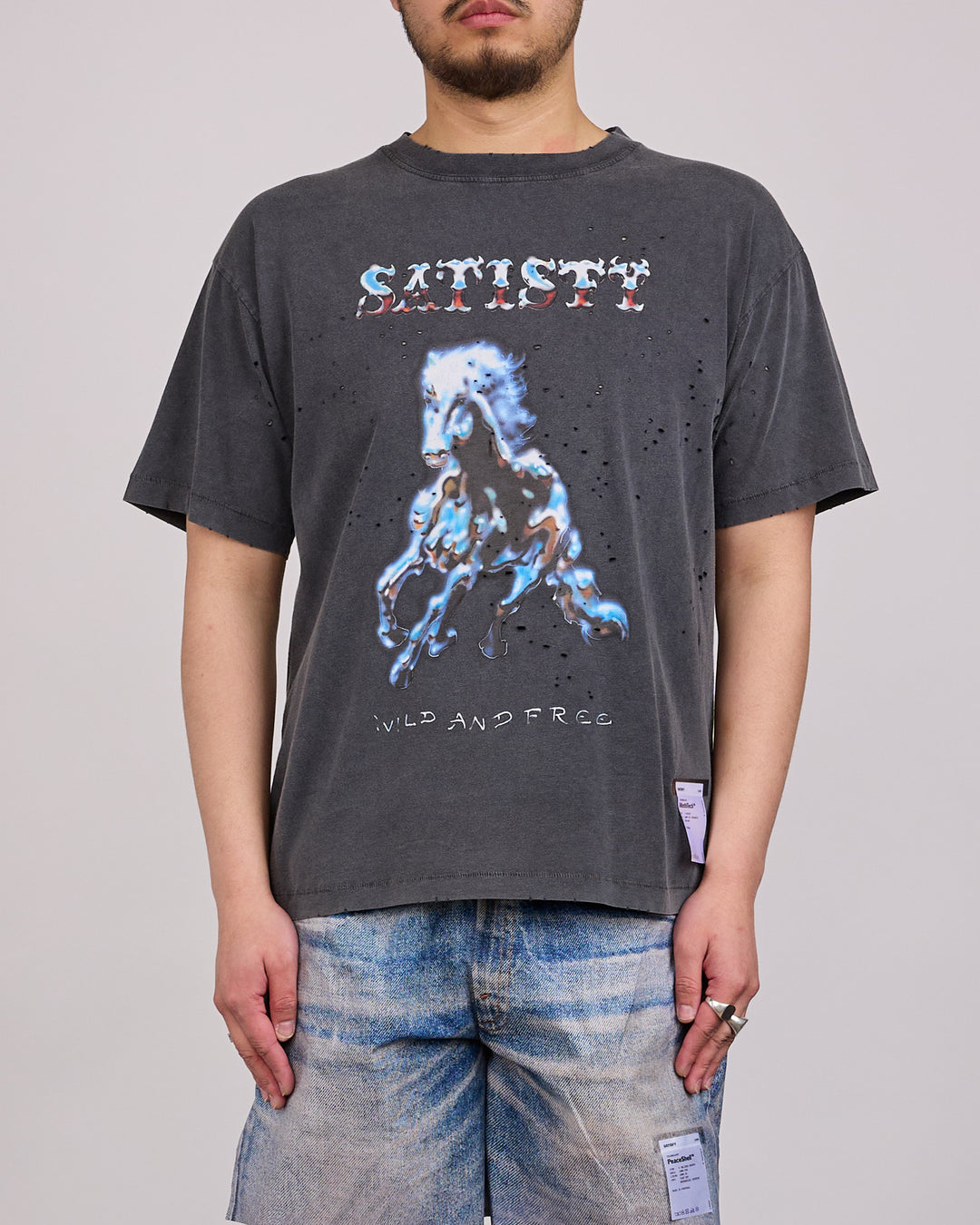 SATISFY MothTech Blue Horse T-Shirt Aged Black