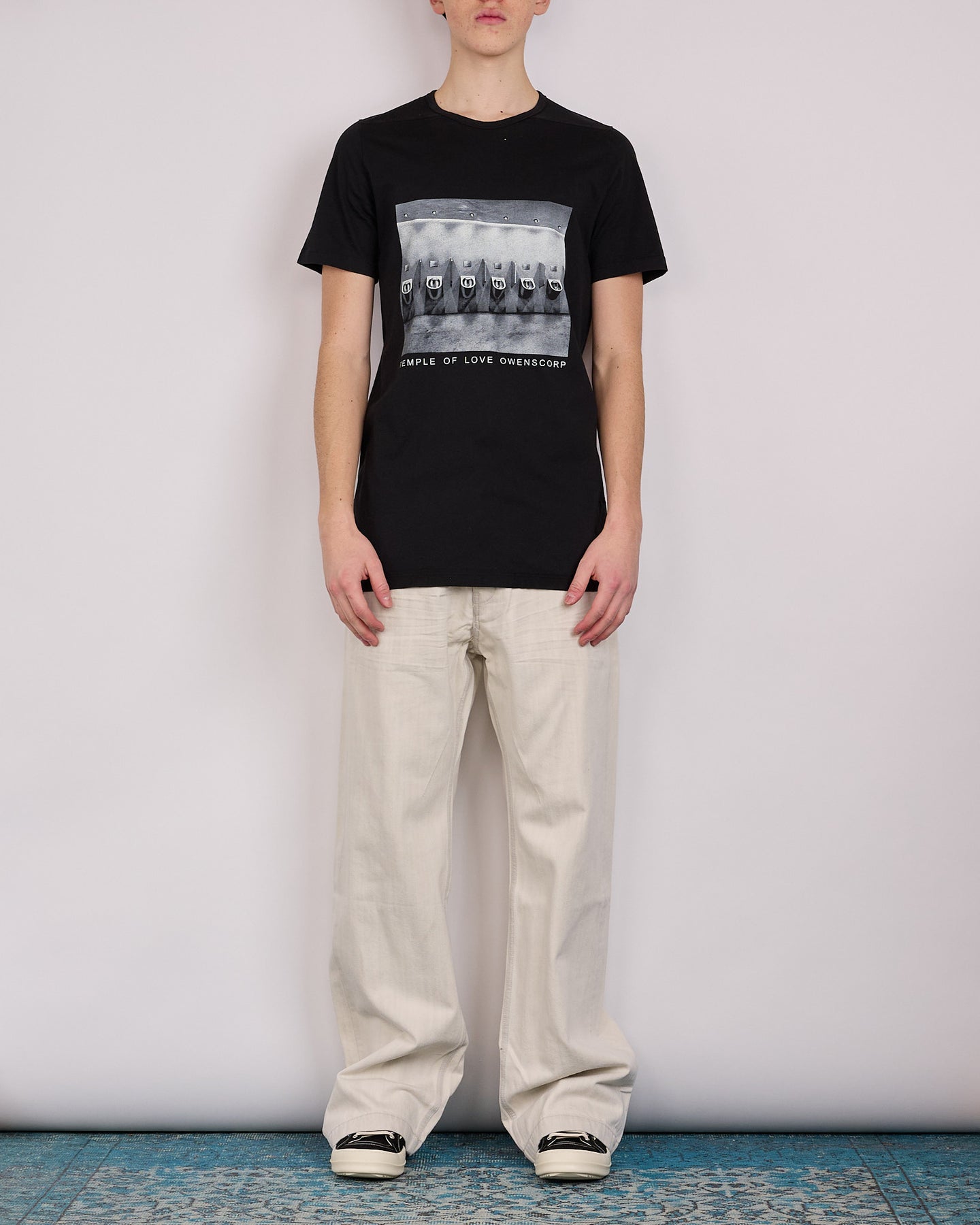 DRKSHDW SS26 Temple Level T in Urinal Graphic in Black/Milk Medium Weight Cotton Jersey