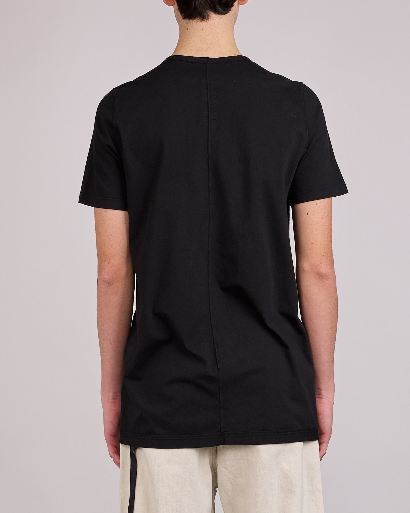 This level T is below hip length, with short sleeves and a ribbed crew neck. It features signature front level shoulder seams and a centre back seam.