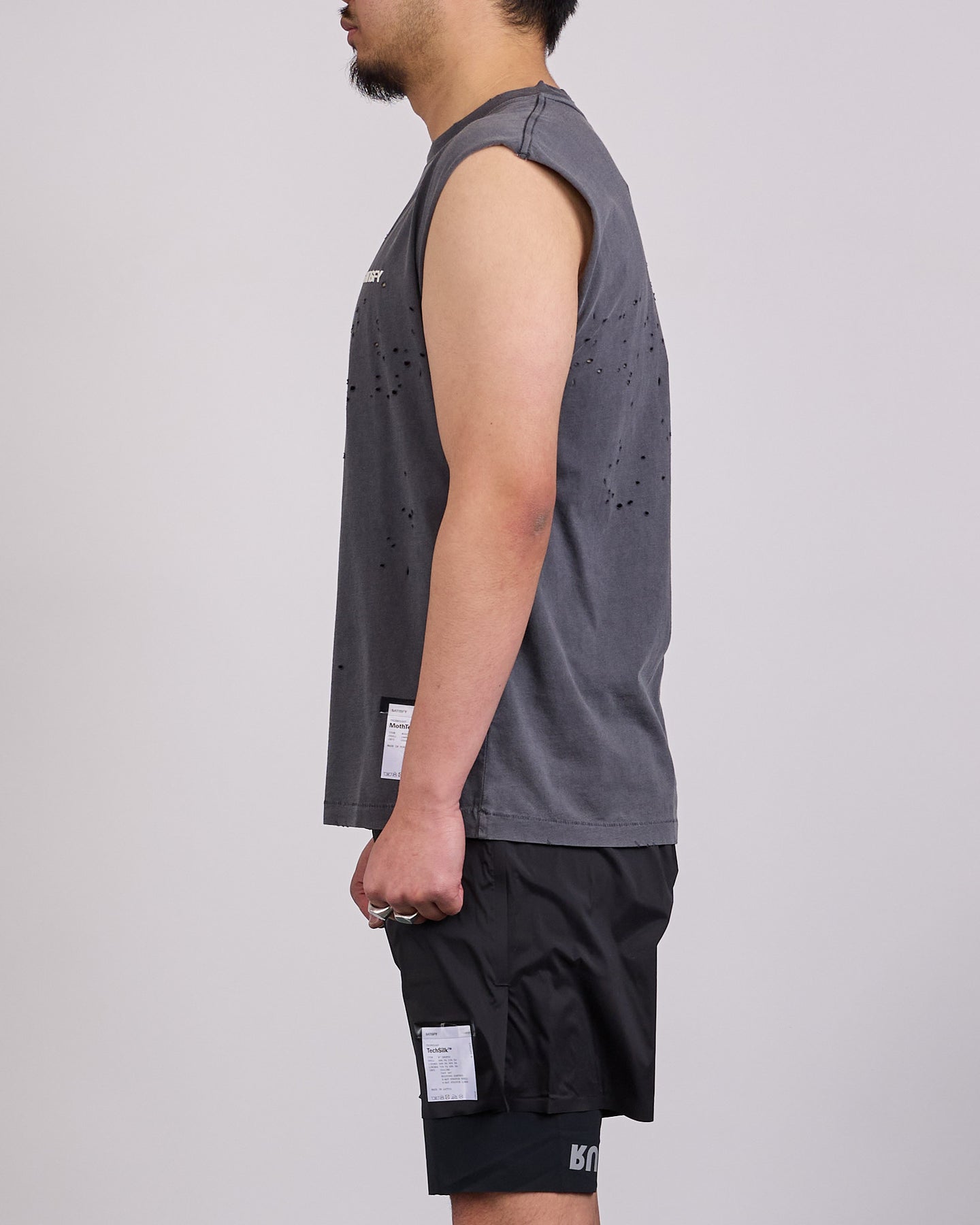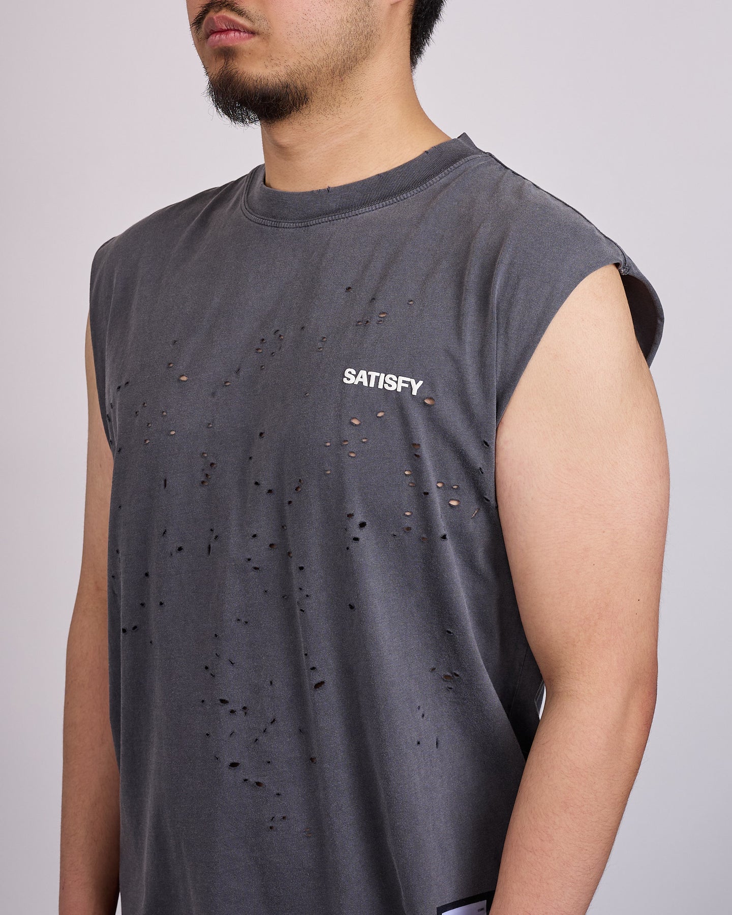 MothTech™ is engineered to mirror the natural wear patterns of shirts shaped by years of motion. Ventilation is body-mapped and precision cut, with perforations placed exactly where heat builds and effort peaks. These signature moth openings move air freely without disrupting rhythm. Overwashed organic cotton balances softness with structure, delivering comfort from day one that only deepens over time. An iconic SATISFY silhouette, reimagined as a muscle tee.
