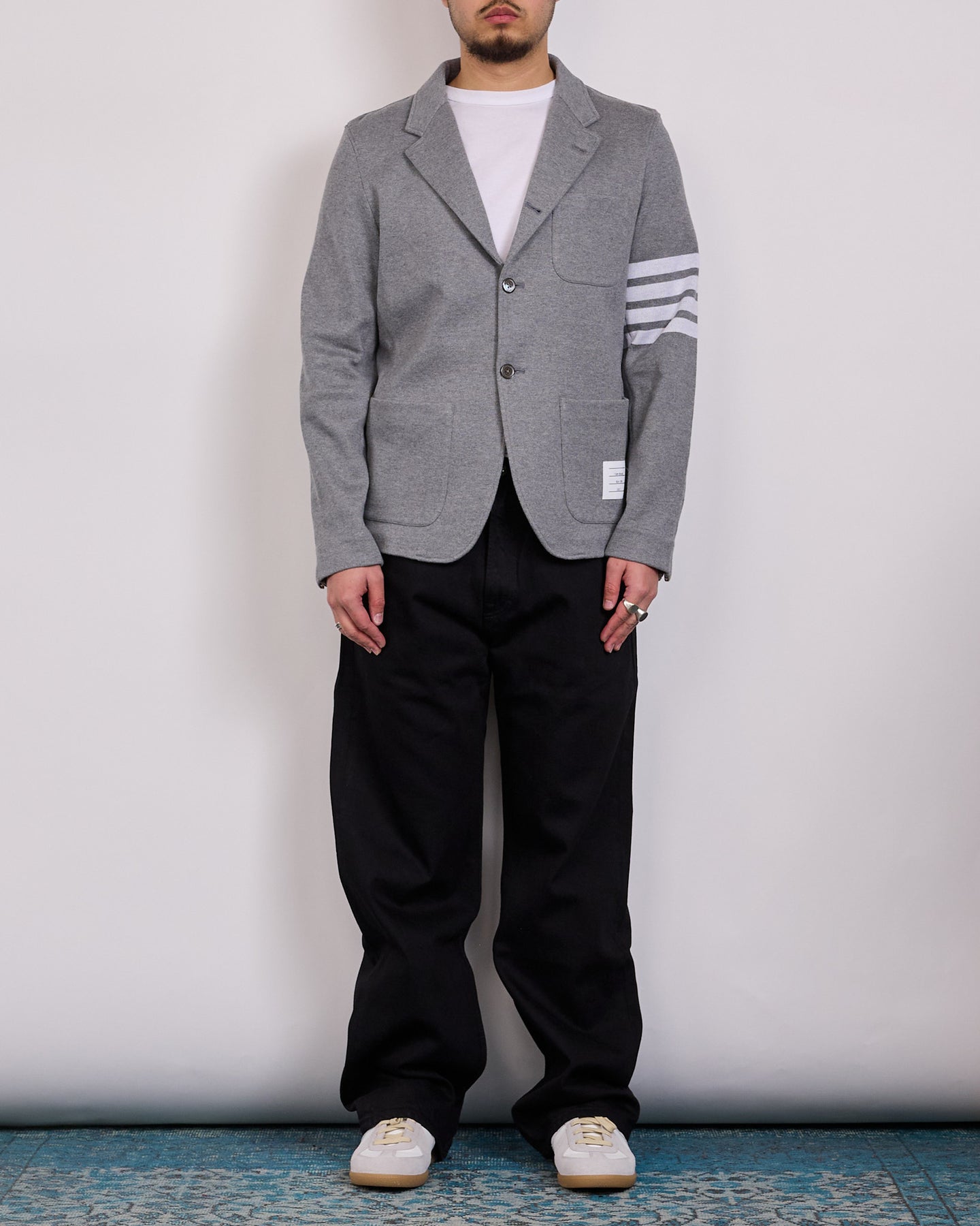 Thom Browne Double Face Knit 4 Bar Sack Jacket reinterprets the classic sport coat through a slightly relaxed, knit-driven construction while maintaining the brand’s precise sense of proportion. Crafted from double face cotton knit, the jacket offers a soft structure and everyday comfort, balanced by tailored detailing and the signature 4 Bar stripe at the sleeve. A versatile piece that bridges formal and casual with ease, grounded in Thom Browne’s uniform aesthetic.