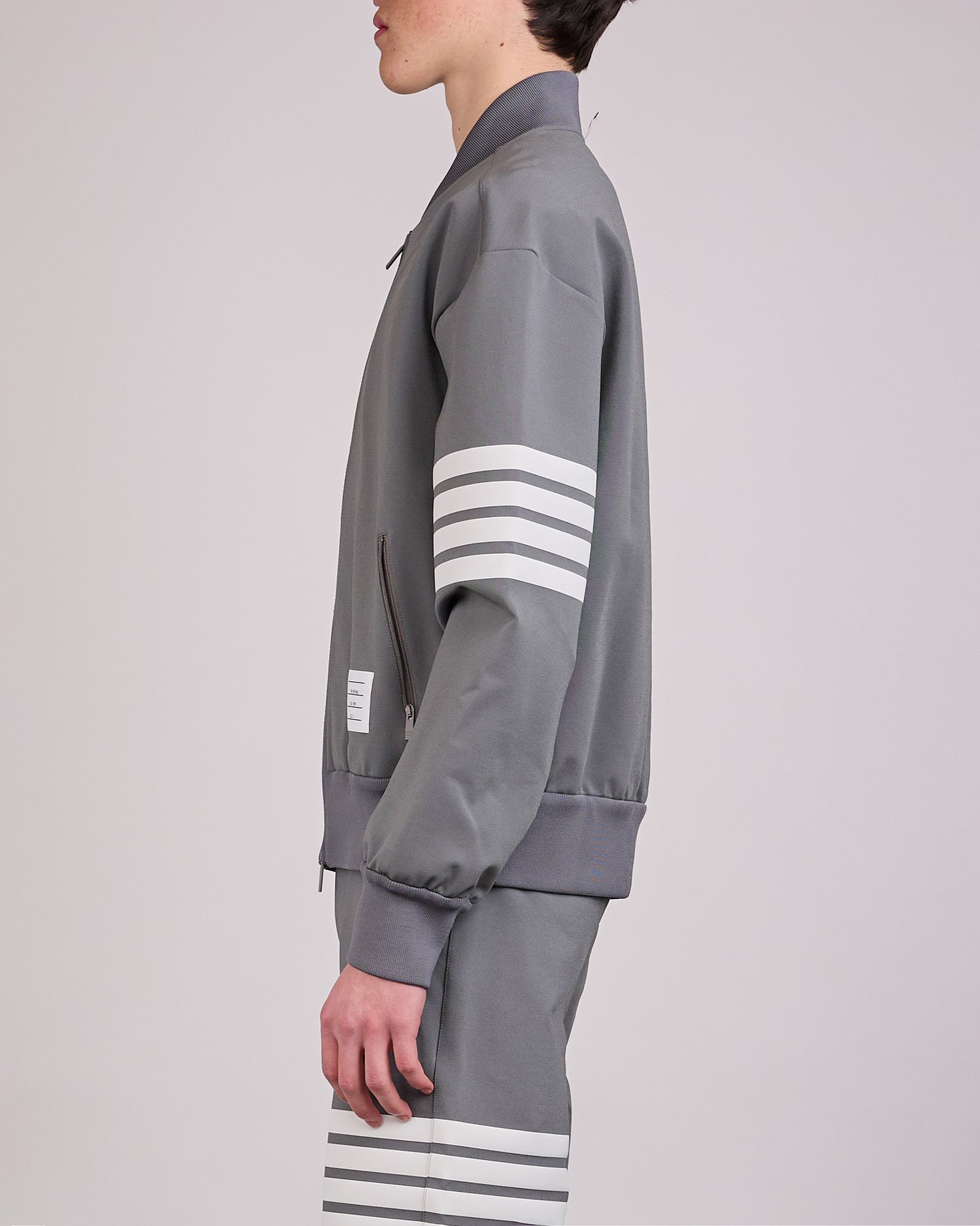 A study in form and function, the Thom Browne 3M 4-Bar Tech Bomber is crafted from a technical viscose blend that balances structure with ease of movement. 3M reflective 4-bar detailing sharpens the silhouette, reinforcing the brand’s sport uniform codes with a modern, engineered finish.
