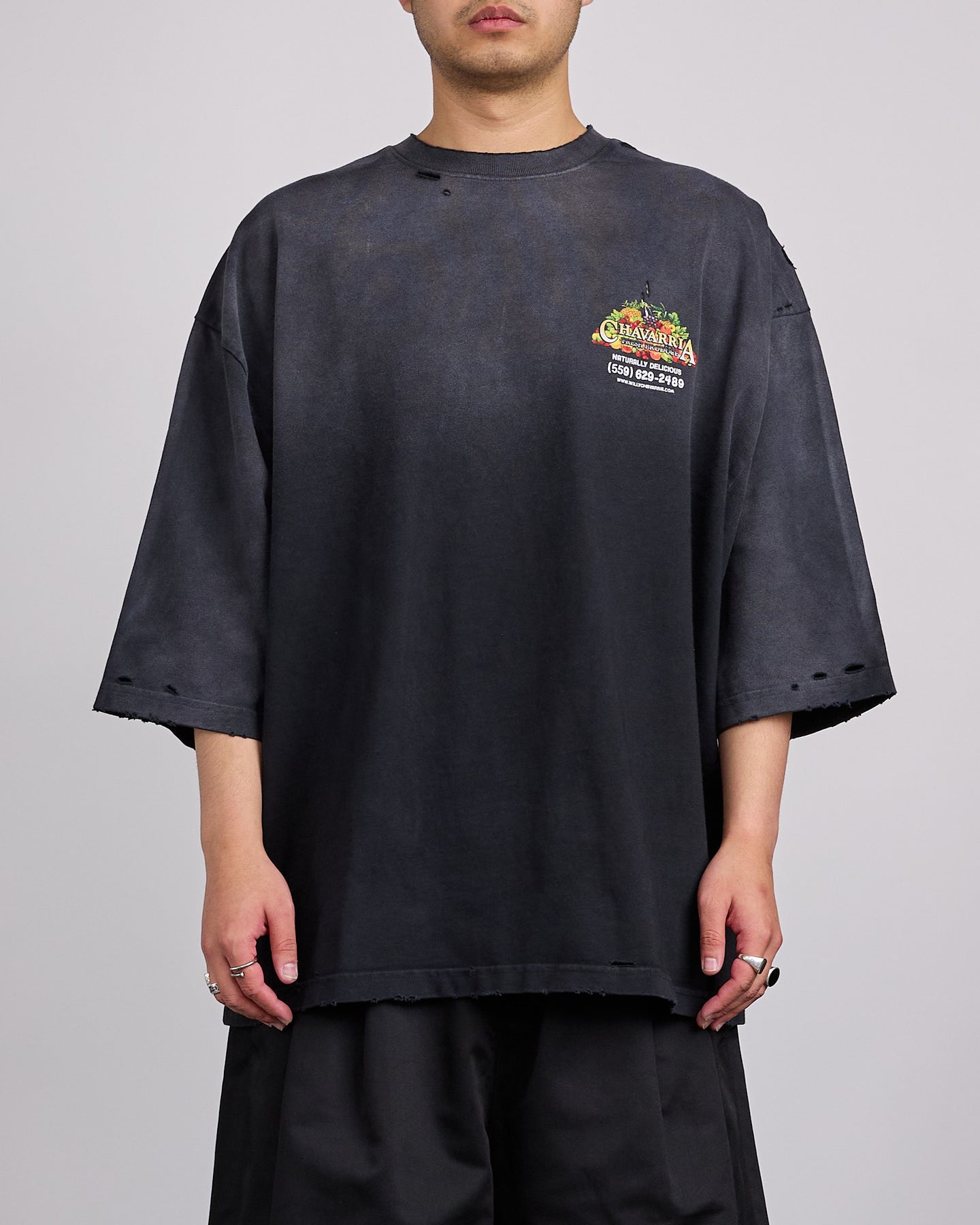 Willy's Destroyed Buffalo Tee has a cropped, oversized boxy fit. Featuring a drop shoulder design and vintage produce-inspired graphics, this tee effortlessly merges comfort with a bold, nostalgic aesthetic for a standout look.