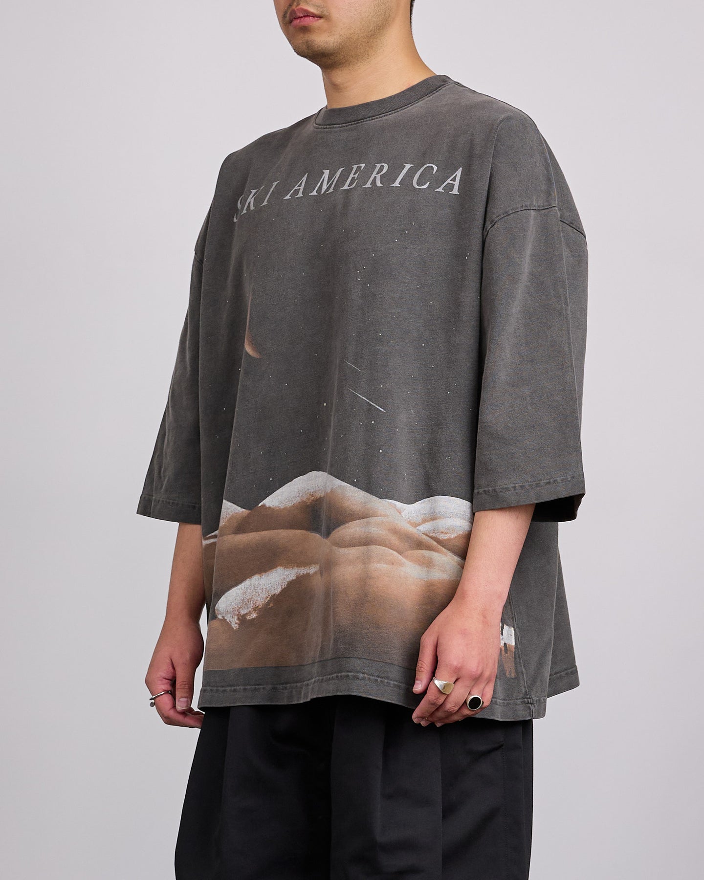The Ski America Tee combines a relaxed fit with a lived-in feel, featuring a washed-out graphic and vintage wash for authentic character. Crafted from 100% cotton, it offers effortless comfort and timeless appeal.