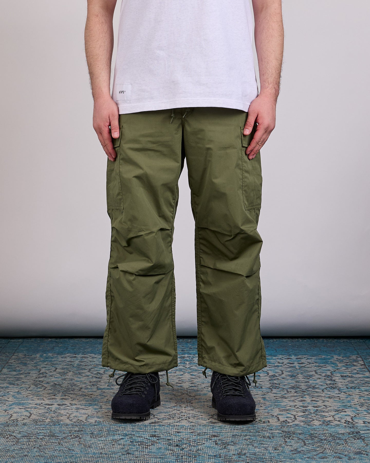 WTAPS MILT0001 NYCO Weather Cargo Pant is built around the brand’s utilitarian roots, combining military-inspired detailing with everyday wearability. Constructed from a durable cotton and nylon weather cross fabric, the silhouette is relaxed and functional, with articulated knee tucks that support natural movement. Two Accordion-style cargo pockets, the right leg features a printed size designation, a signature WTAPS detail that reinforces its tactical lineage. Adjustable drawcords at the waist and hem allow the fit to be refined depending on wear and layering.