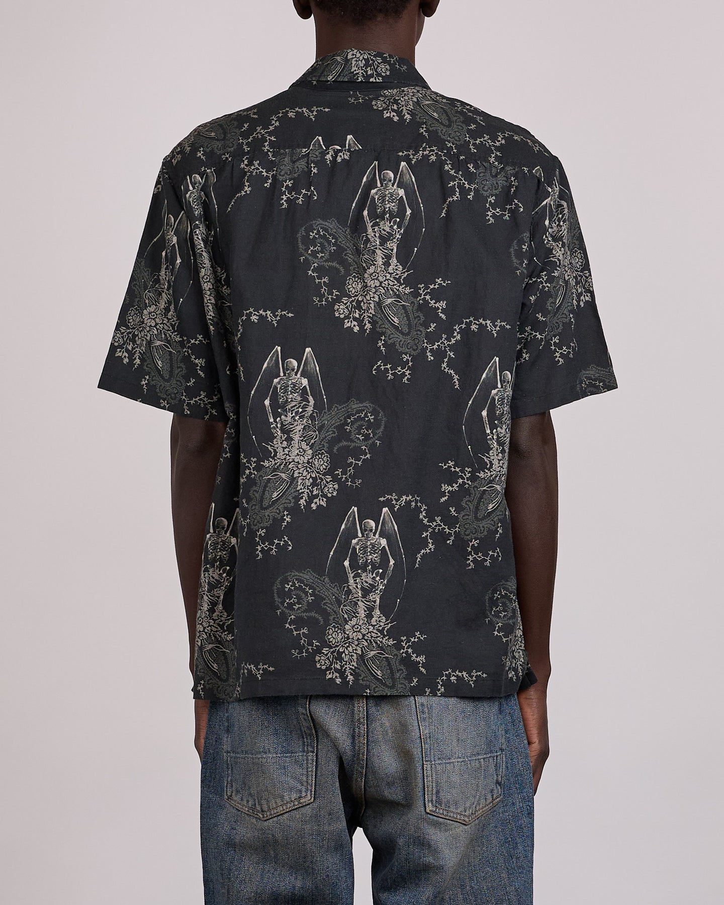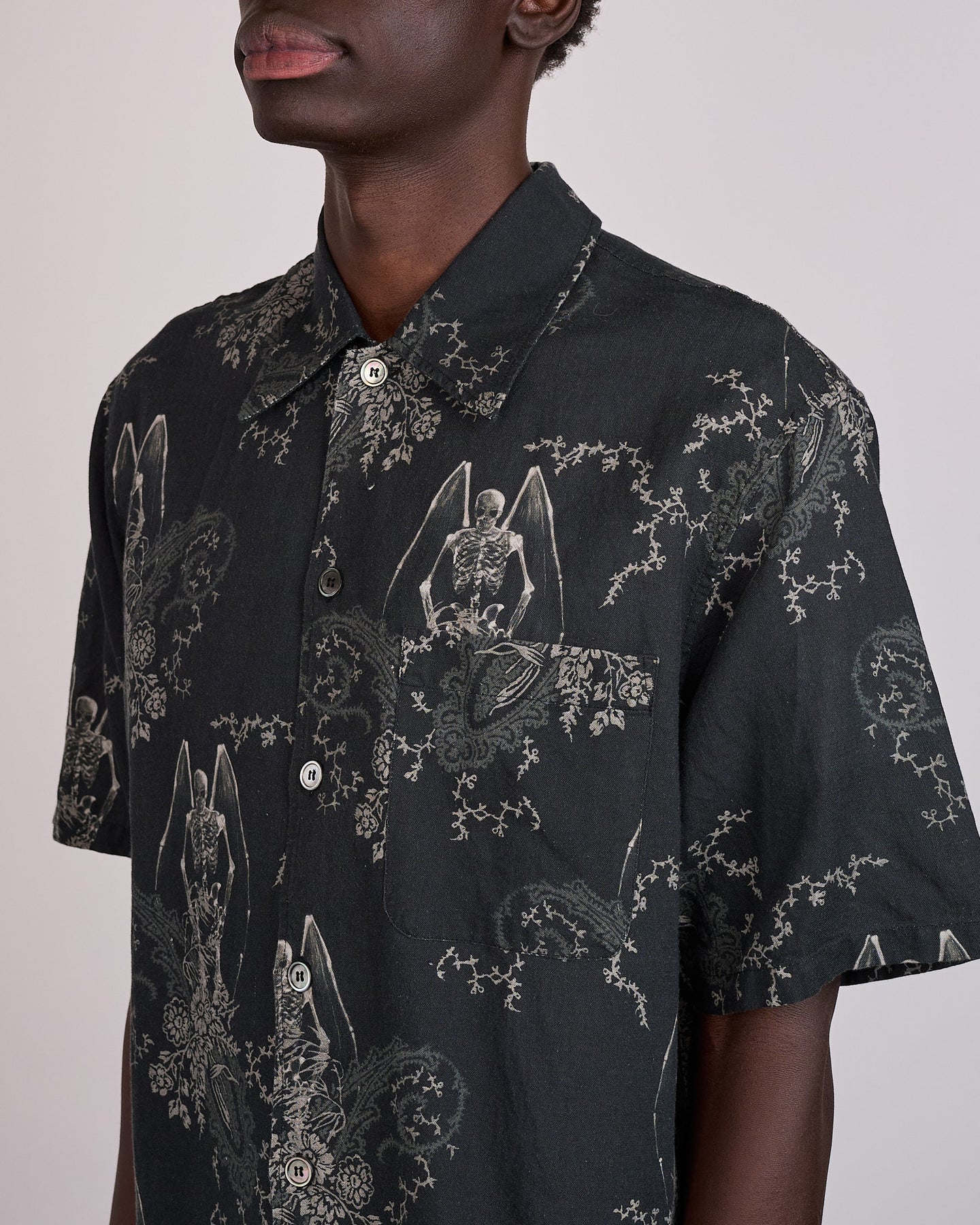 Produced in Portuguese cotton and linen, the Our Legacy Every Button Shirt SS Death Paisley Print pairs graphic expression with a relaxed, refined silhouette. The Death Paisley print adds depth and movement across the fabric, while the straight cut and boxy proportion keep the shirt easy and wearable.