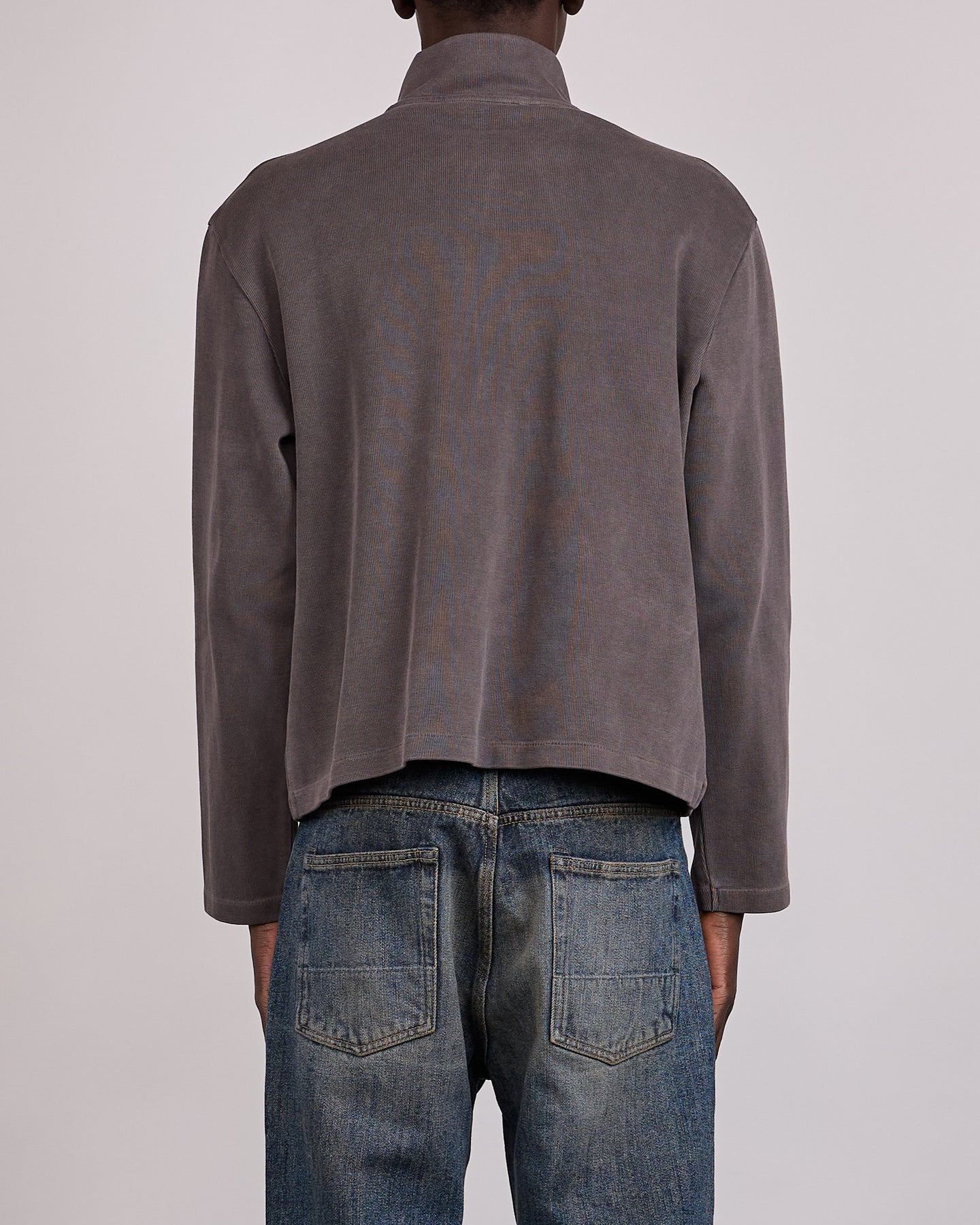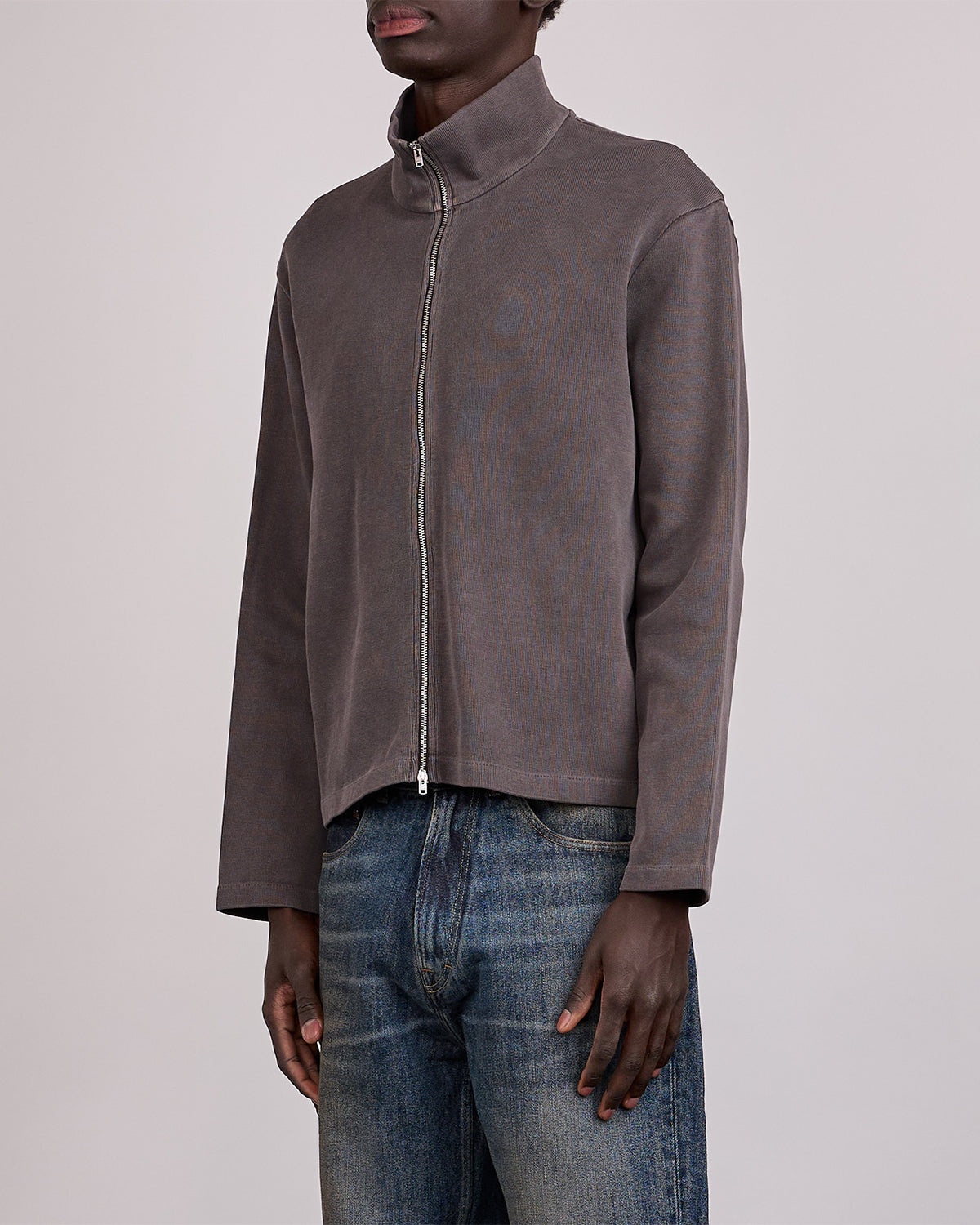 Produced in Portuguese organic cotton athletic rib, the Our Legacy Shrunken Fullzip Worn Graphite Athletic Rib is piece dyed to achieve a softly worn, lived-in tone. Cut in a short, boxy silhouette, the jacket balances relaxed proportion with technical finishing, designed to develop character through wear and time.