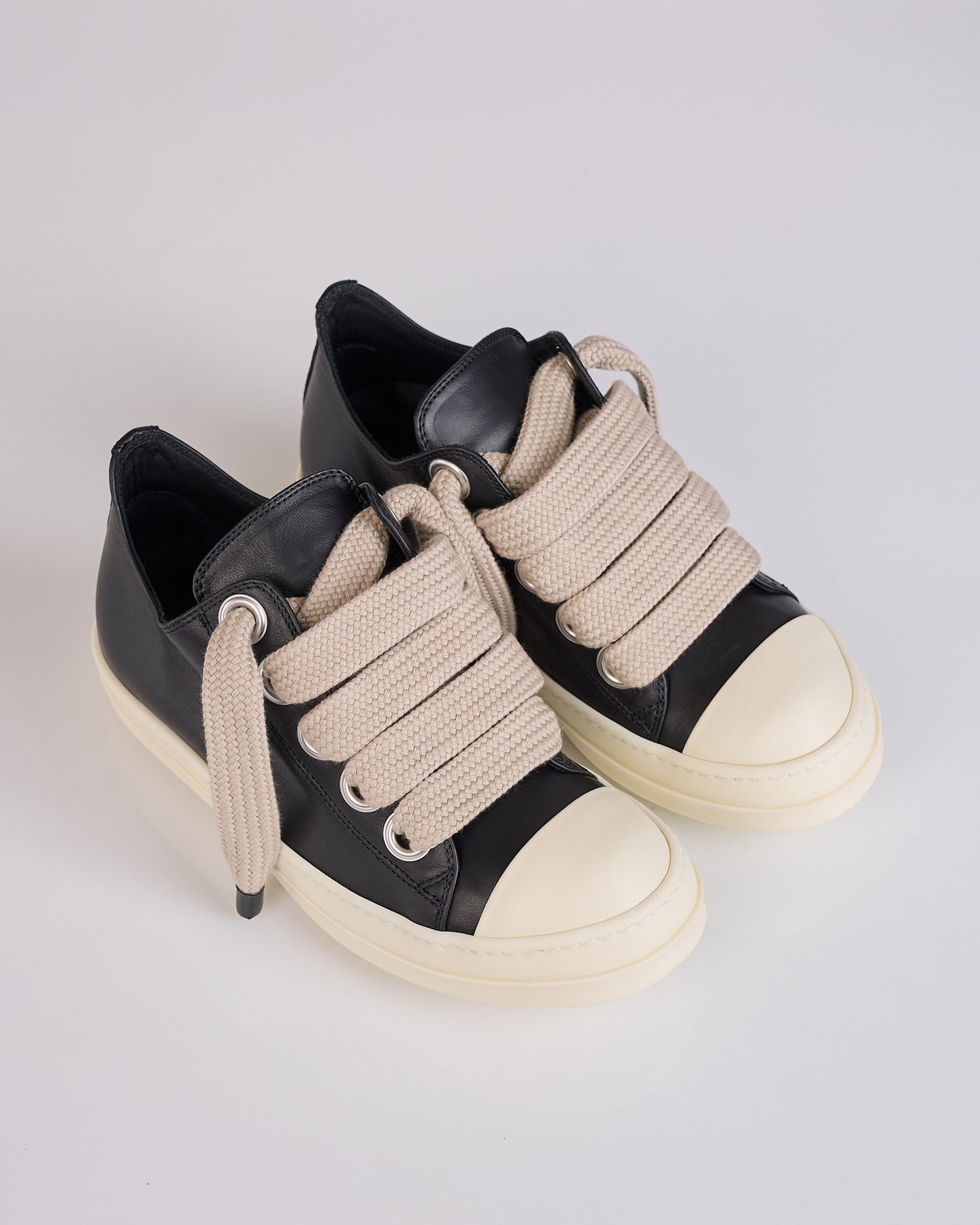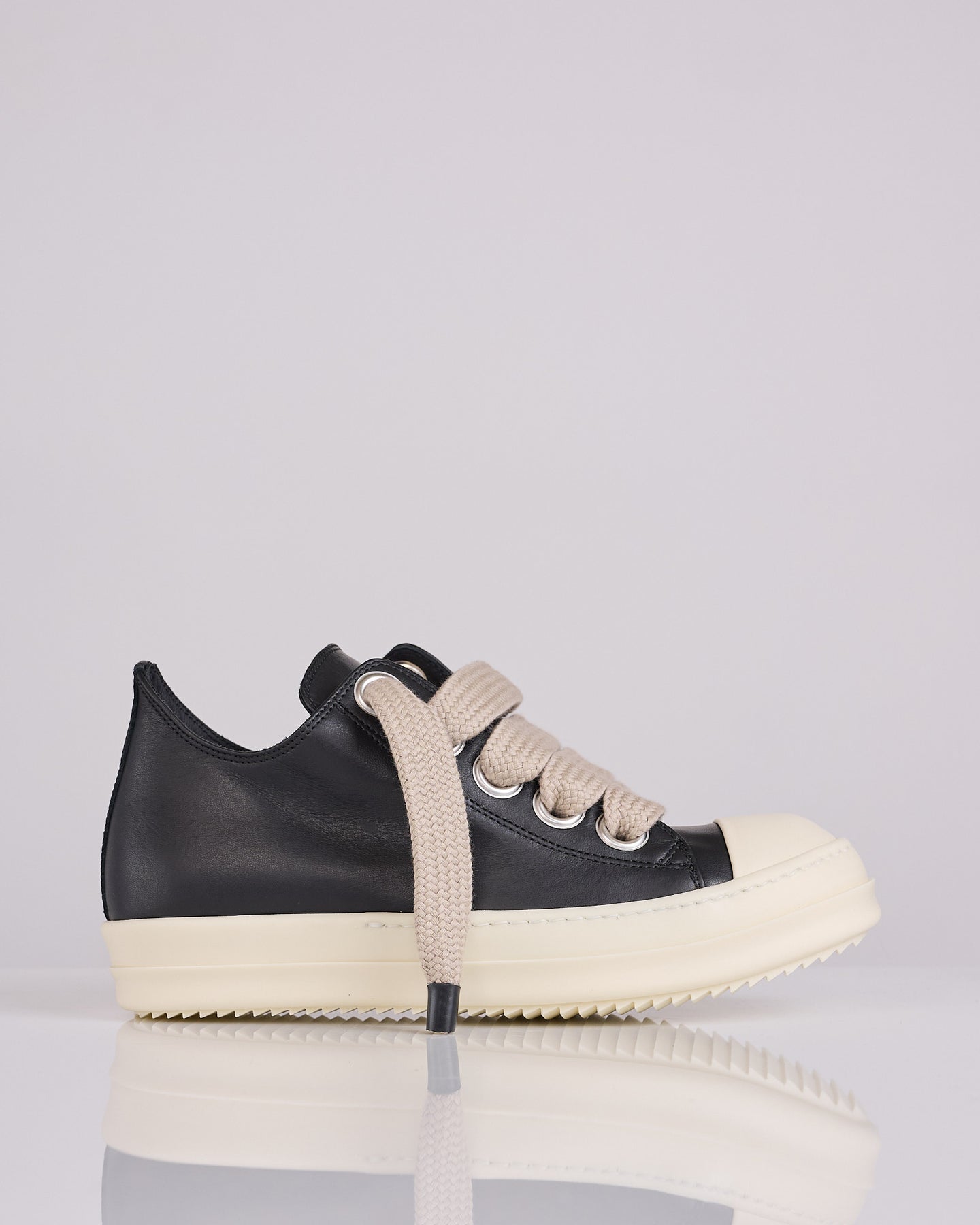 Rick Owens SS26 Temple Jumbolace Low Sneeks in Black/Milk/Milk Full Grain Cow Leather