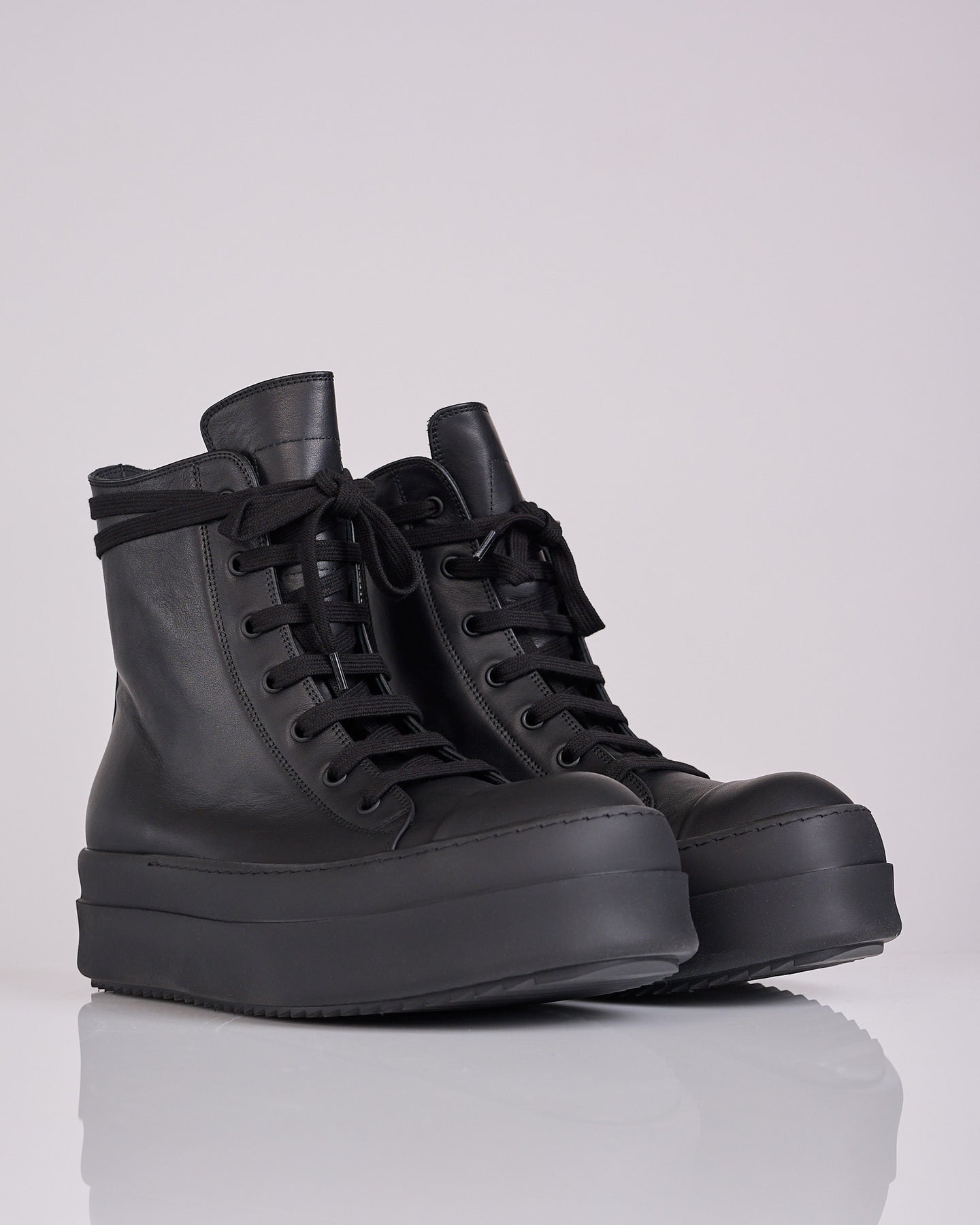 Rick Owens SS26 Temple Mega Bumper Sneeks in all Black Full Grain Cow Leather
