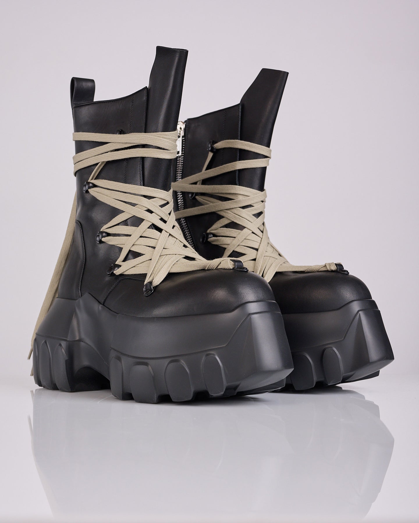 Rick Owens SS26 Temple Megalaced Mega Tractor in Black Washed Calf Leather