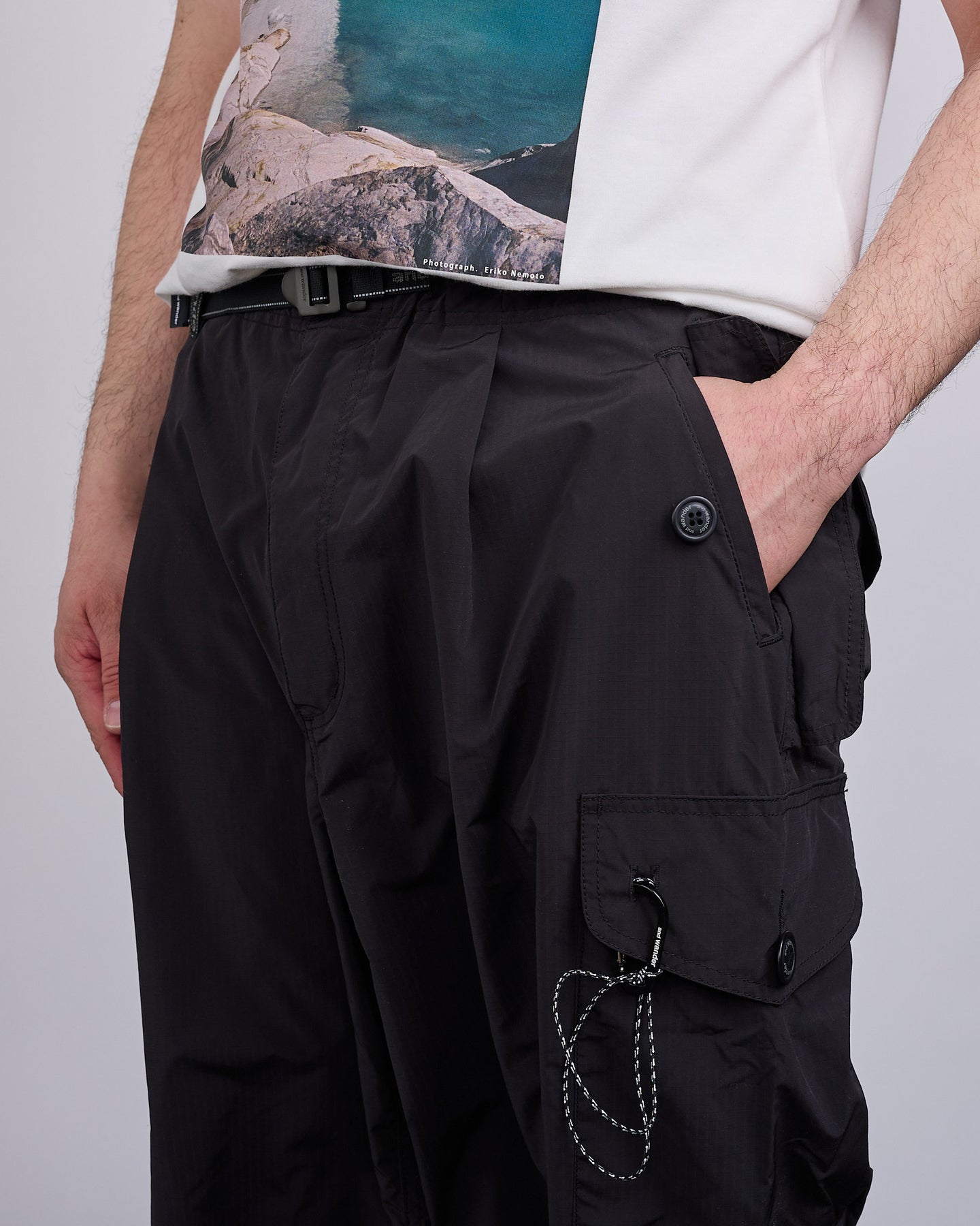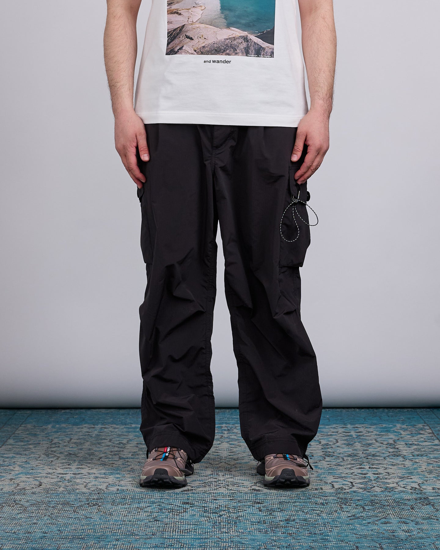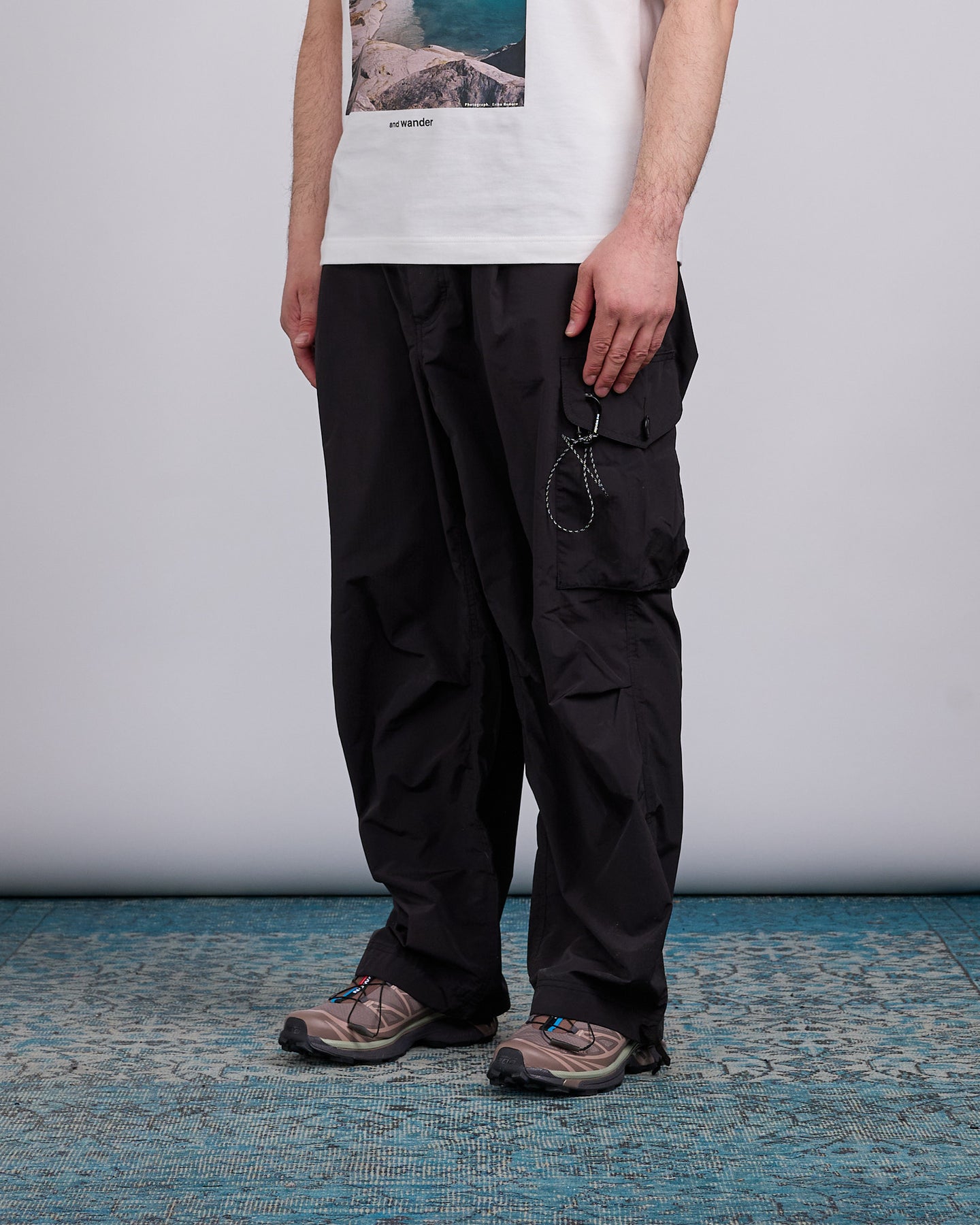 and wander Oversized Cargo Nylon Poly Pant Black