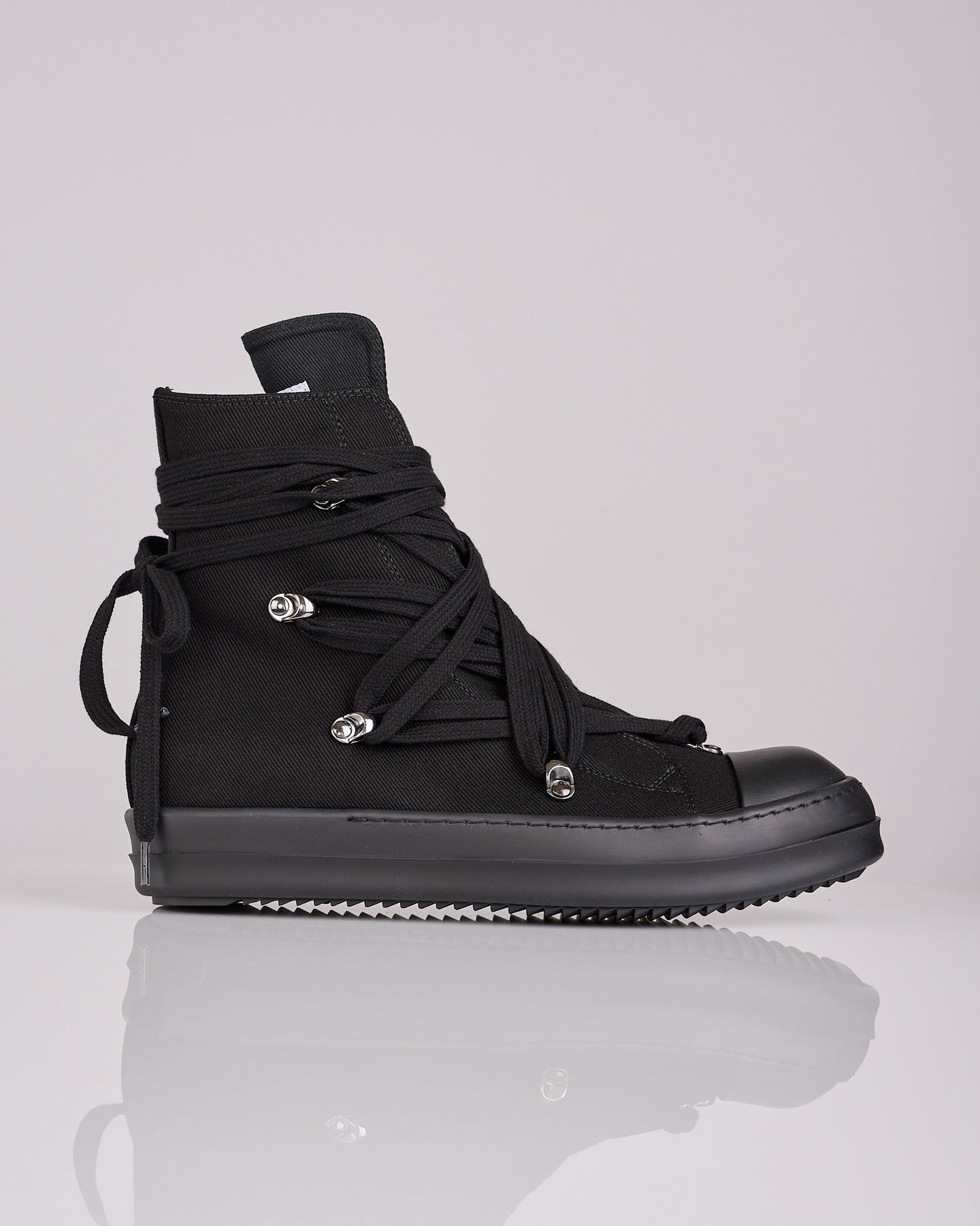 DRKSHDW SS26 Temple Megalace® Sneaks in Black/Black/Black 13oz Overdyed Denim