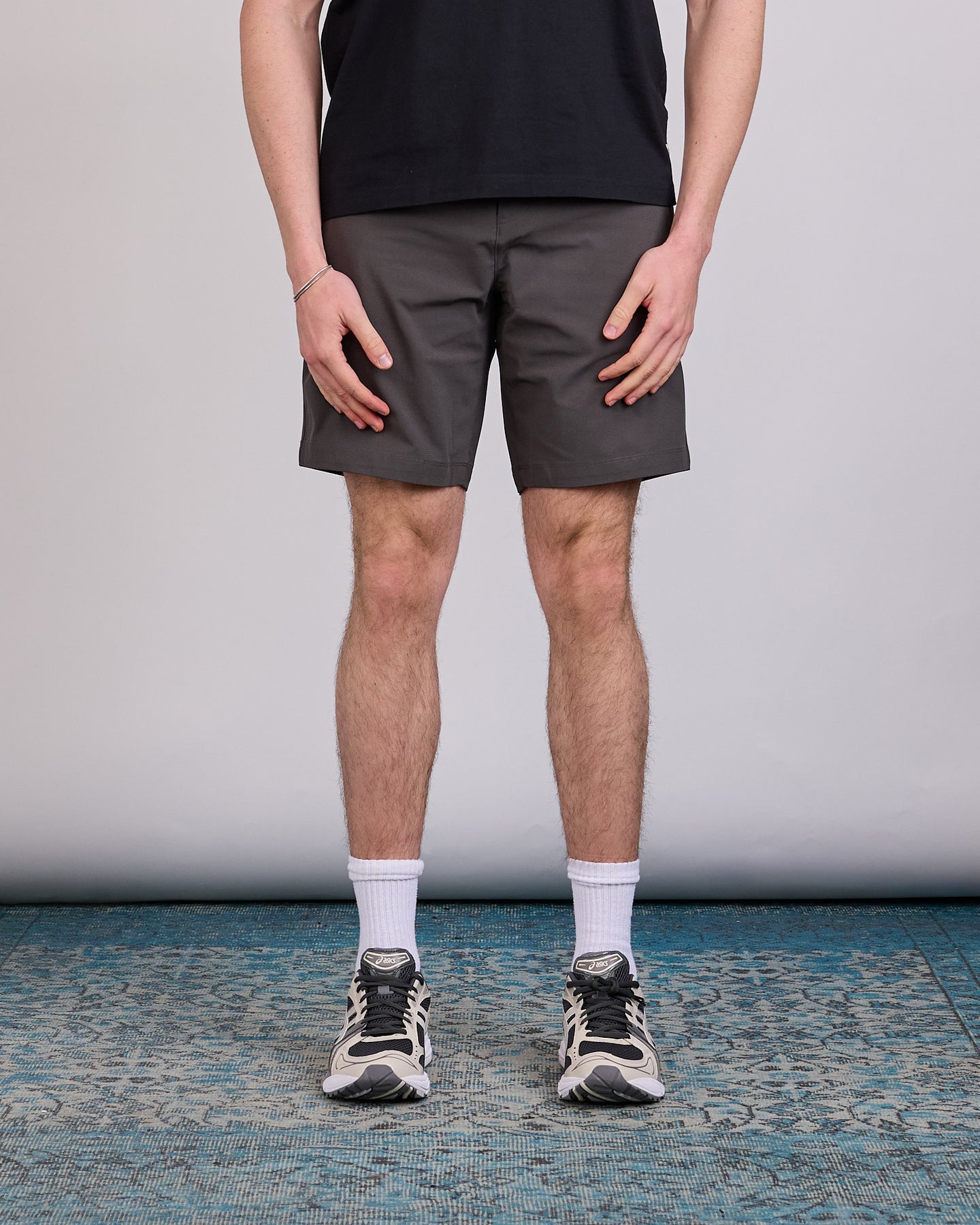 This versatile short bridges the gap between athletic wear and lifestyle attire, made from a sophisticated stretch knit fabric to ensure effortless comfort on the move. Designed with an elastic belt loop waistband, reverse coil zip pockets and front fly, rear welt pockets, and a diamond crotch gusset for added mobility and stretch.