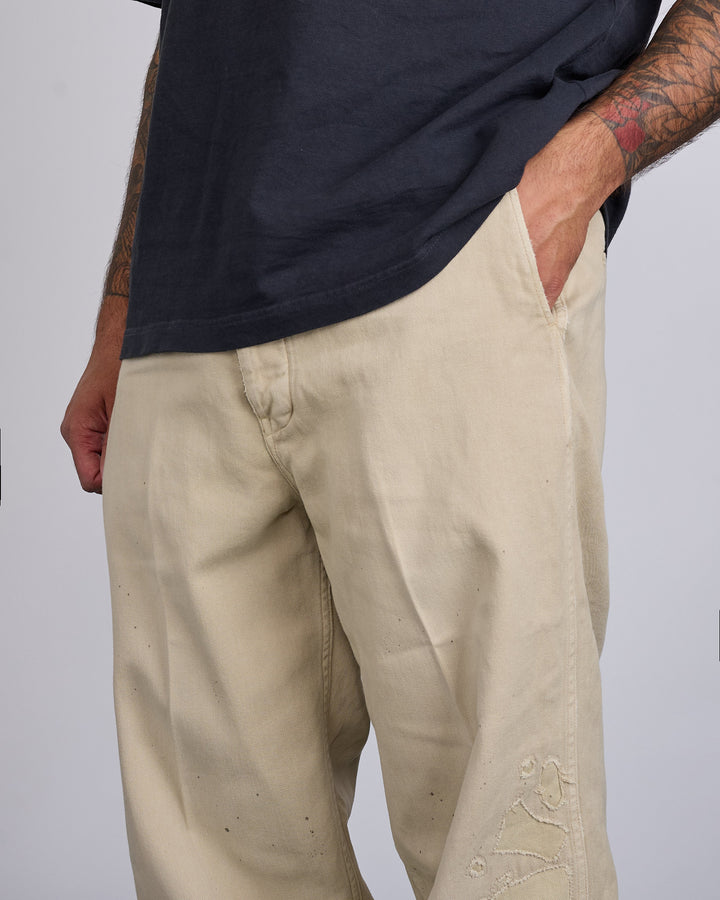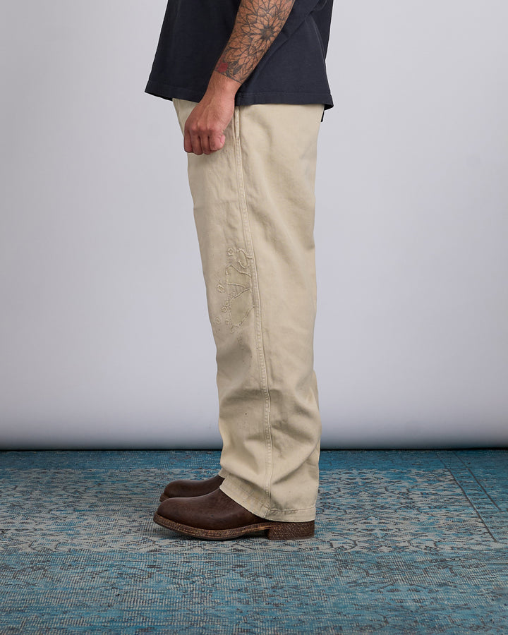 A reworked essential featuring Visvim’s signature crash processing, the Motors Chino Pant Crash is made from a custom soft weave long-staple cotton chino with a garment dyed and distressed finish. The silhouette is cut with a high rise and a wide, tapered leg for a relaxed yet structured look.