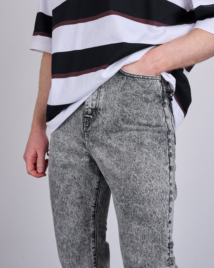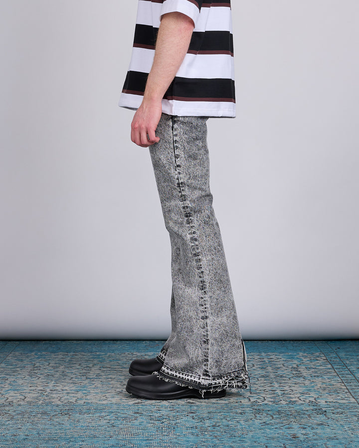 A refined take on vintage denim, these jeans from Junya Watanabe MAN feature a classic 5-pocket construction with a subtle flare fit. Cut with a high rise and washed black finish, they offer a retro silhouette with modern edge.