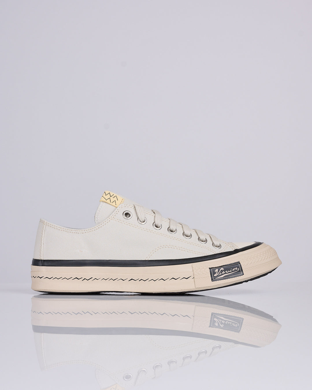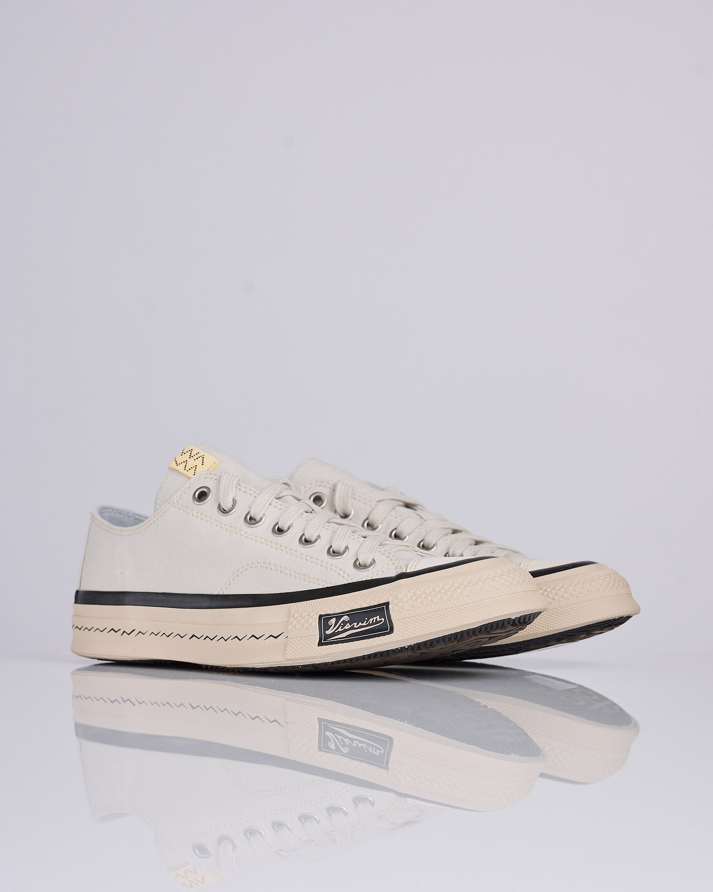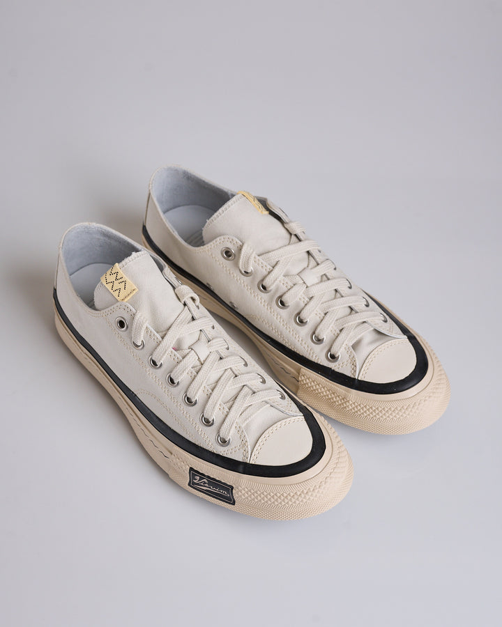 A refined reinterpretation of the classic canvas sneaker, the visvim Skagway Lo is crafted from high-twist Japanese cotton canvas with a washed finish for a vintage look and feel. It features a pigment-free leather lining and natural cork insole for breathable comfort, along with a custom Vibram® outsole for enhanced durability. Finished with metal eyelets and a signature hand-painted visvim leather tab at the tongue, this silhouette merges timeless Americana with artisanal Japanese craftsmanship.