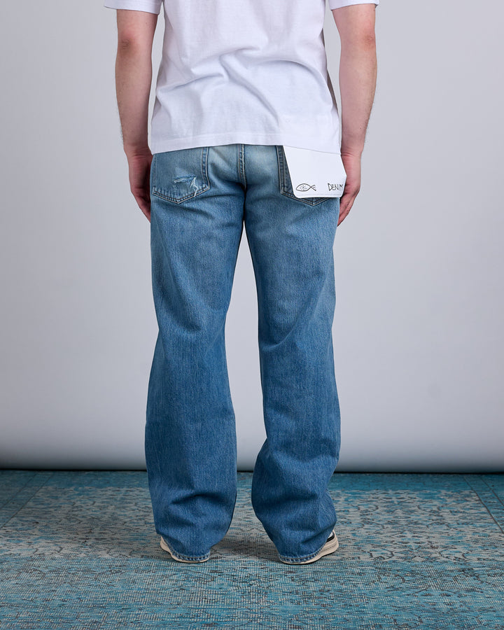 Crafted in-house at visvim® from custom 14oz denim, the Social Sculpture 01 Wide Jean features a seasonal damaged finish for a lived-in, vintage aesthetic. Designed with a regular fit, high rise, and straight leg silhouette, the jean includes custom blue selvedge, natural-dyed buckskin patch, and copper hardware throughout. A hidden internal zip pocket adds subtle functionality.